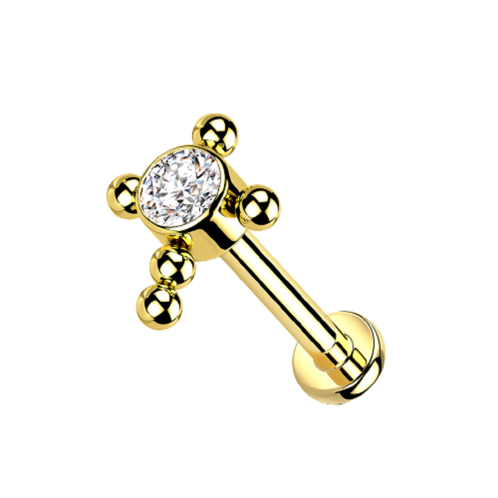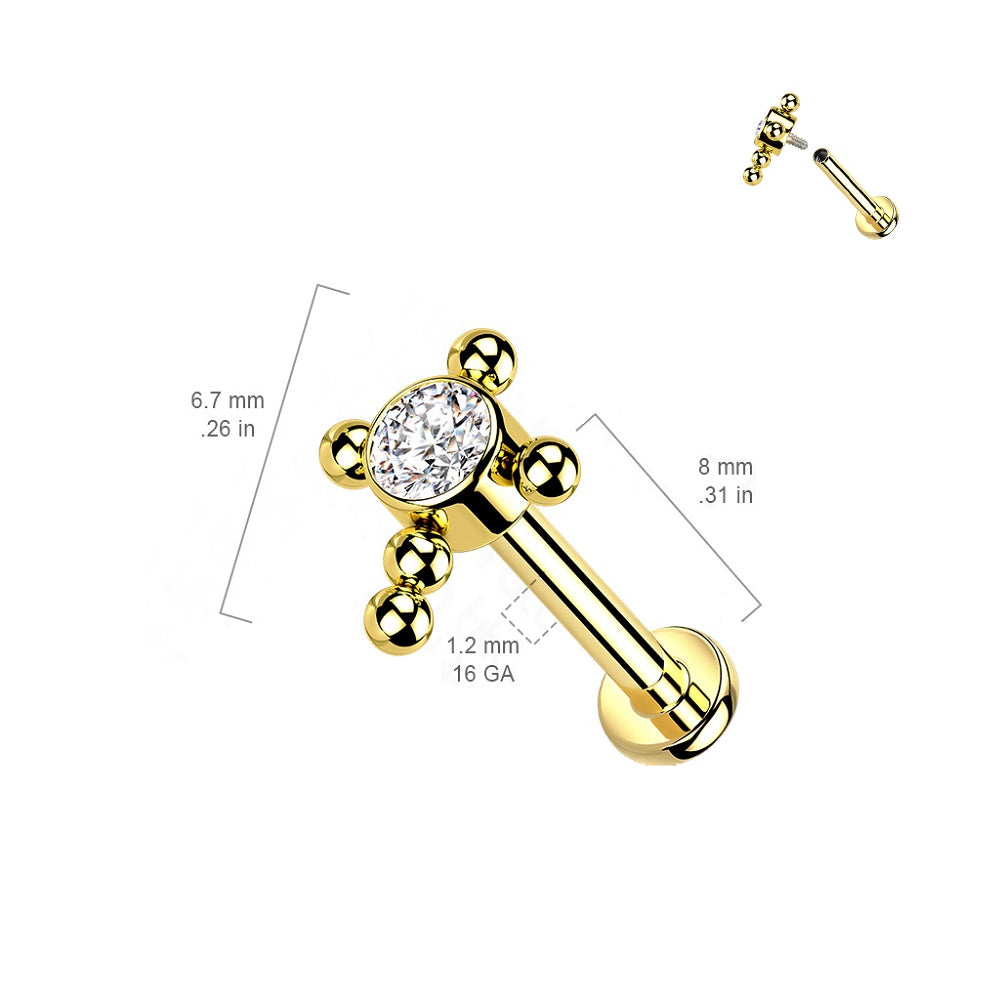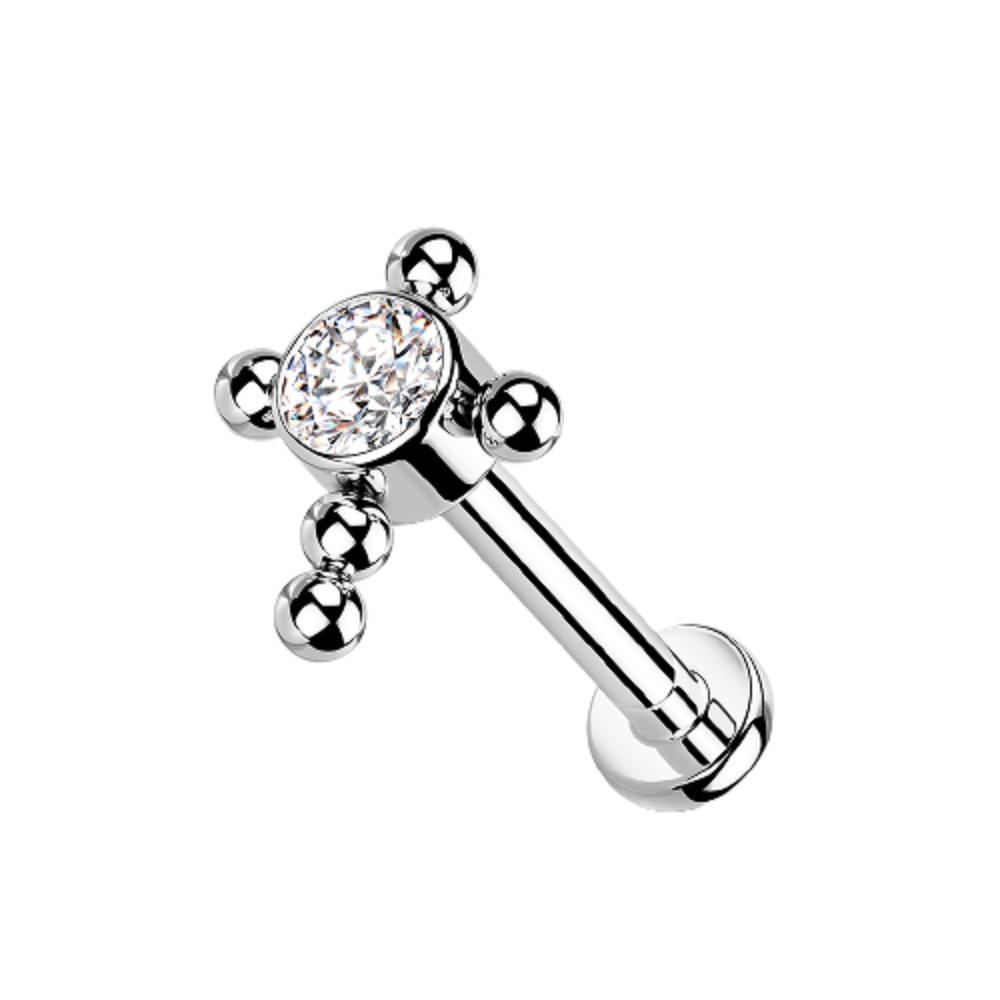 CZ Crystal Centered Ball Cross Internally Threaded Stud - G23 Implant Grade Titanium