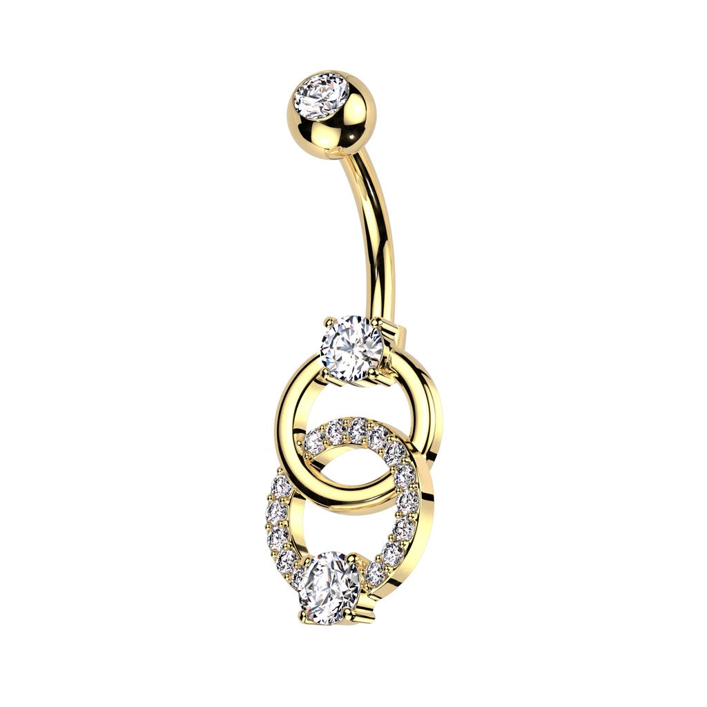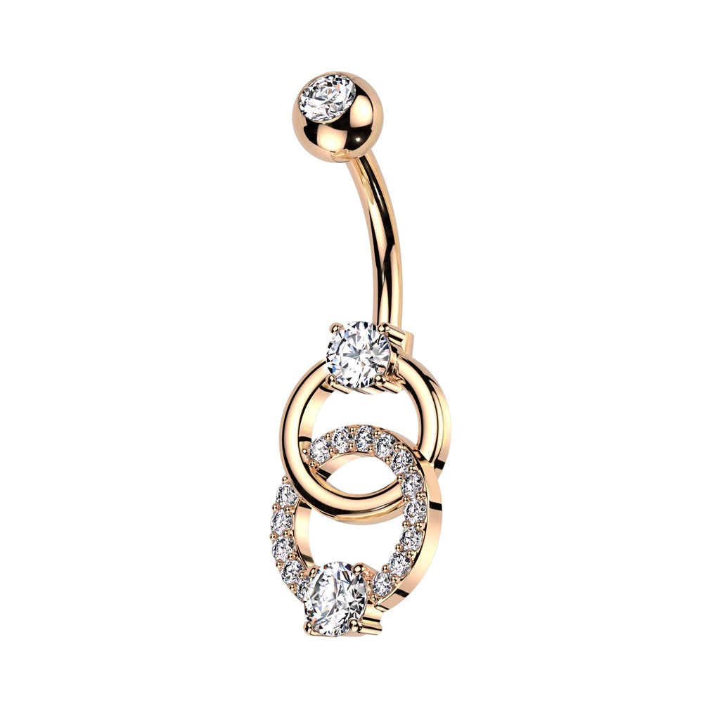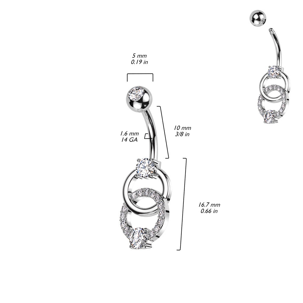 CZ Crystal Double Ring Belly Button Ring - 316L Stainless Steel