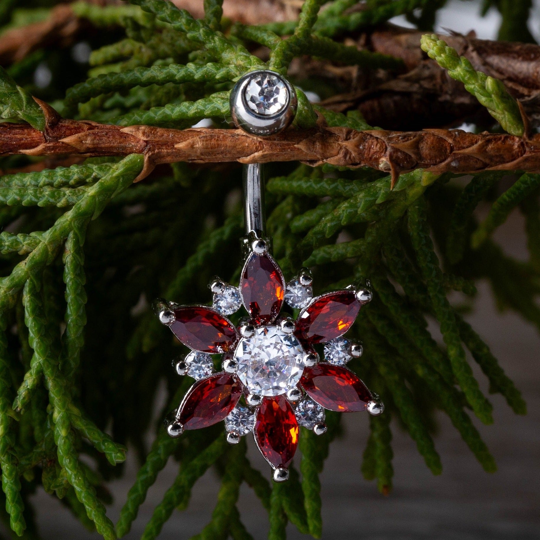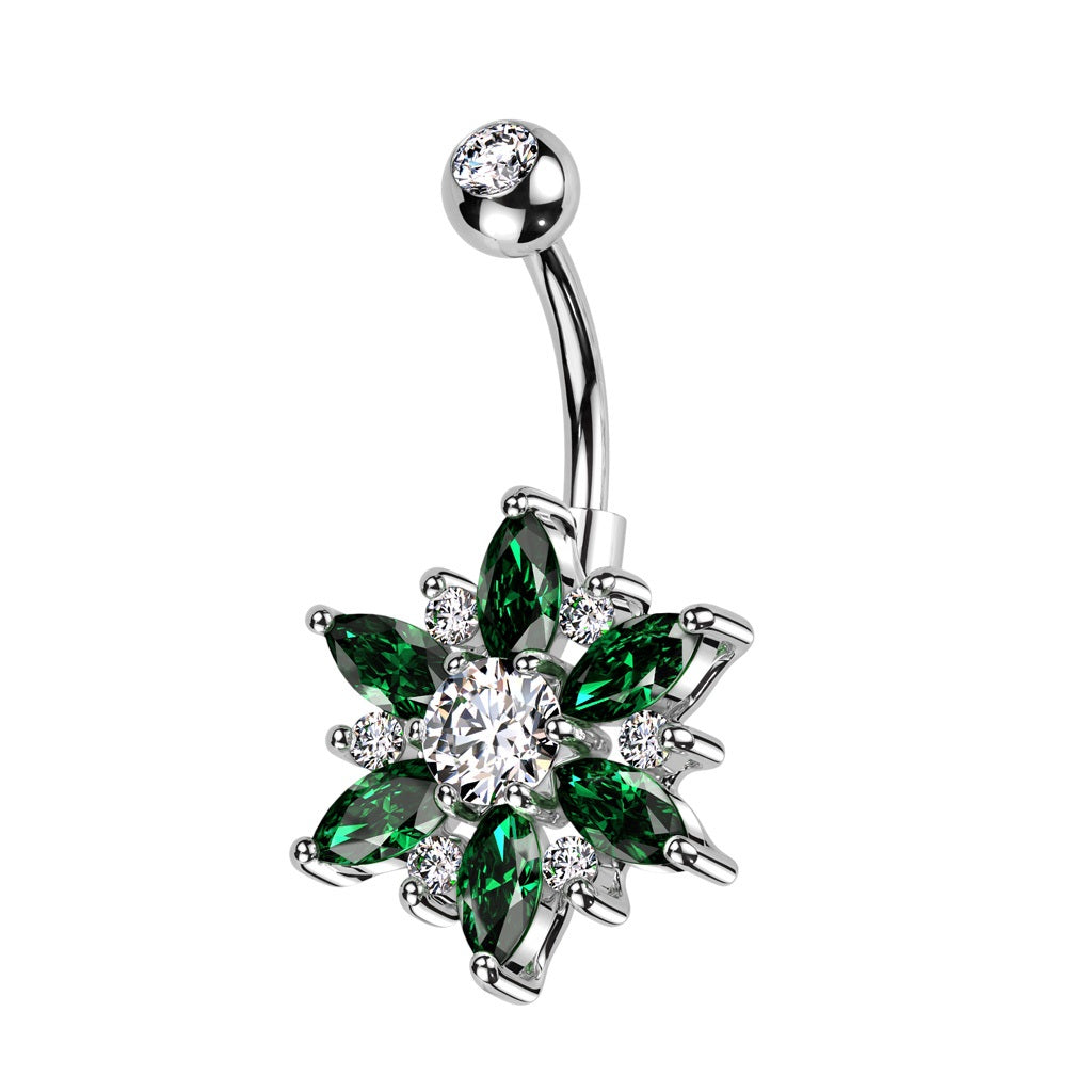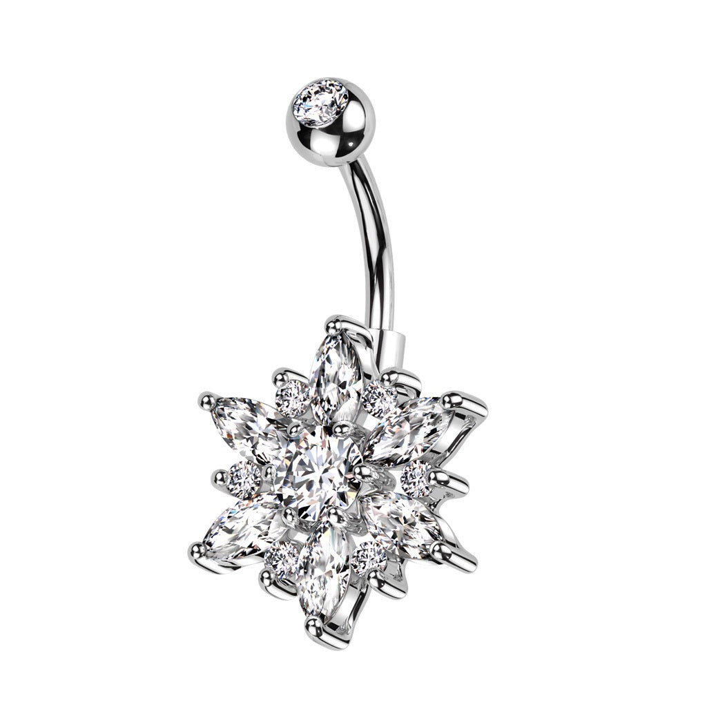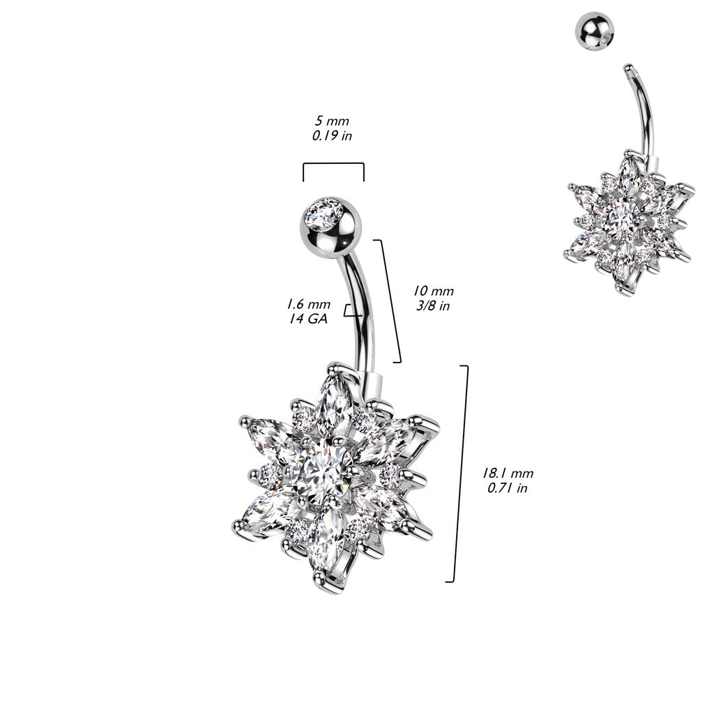 CZ Crystal Flower with Marquise Petals Belly Button Ring - 316L Stainless Steel