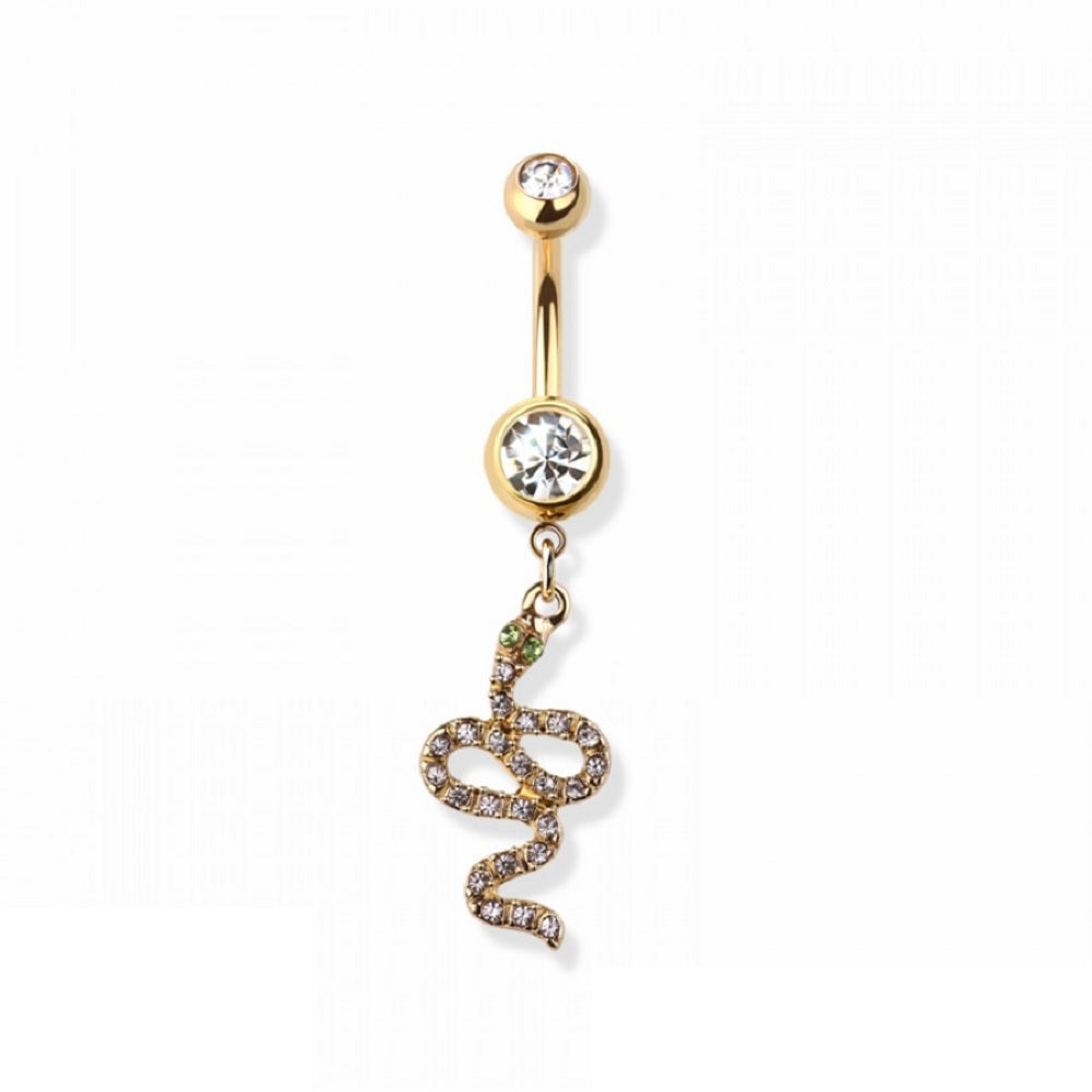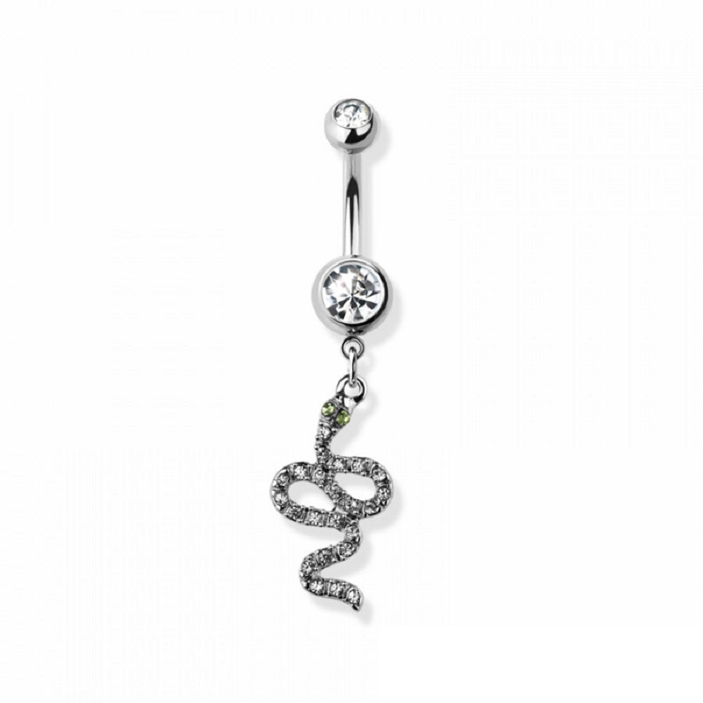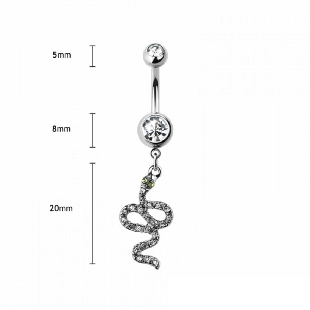 CZ Crystal Green Eyed Snake Dangling Belly Button Ring - 316L Stainless Steel