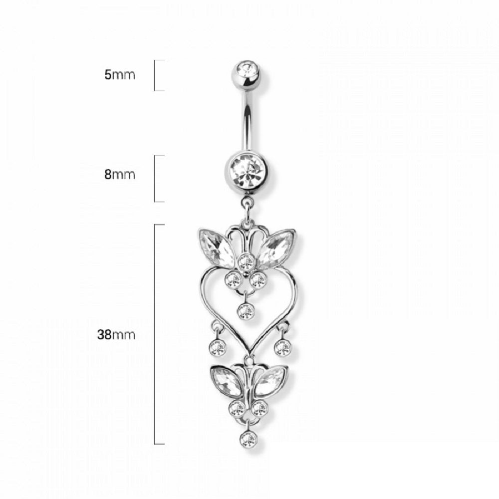 CZ Crystal Heart Butterfly Dangling Belly Button Ring - 316L Stainless Steel