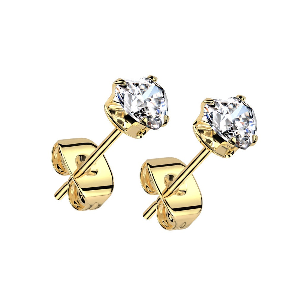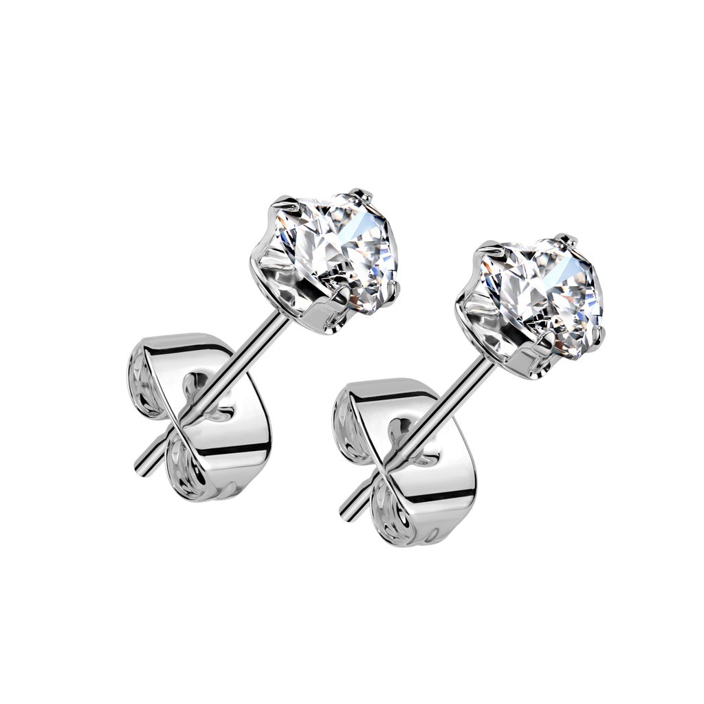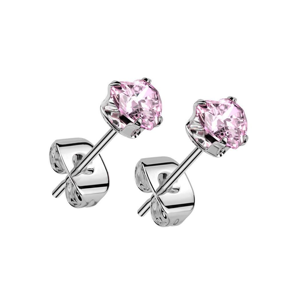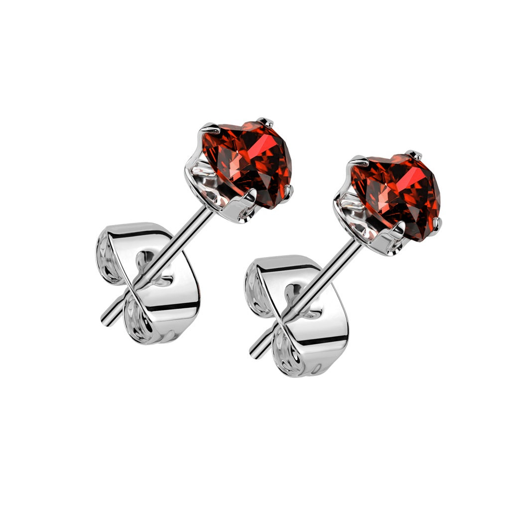 CZ Crystal Heart Stud Earrings - Pair - 316L Stainless Steel