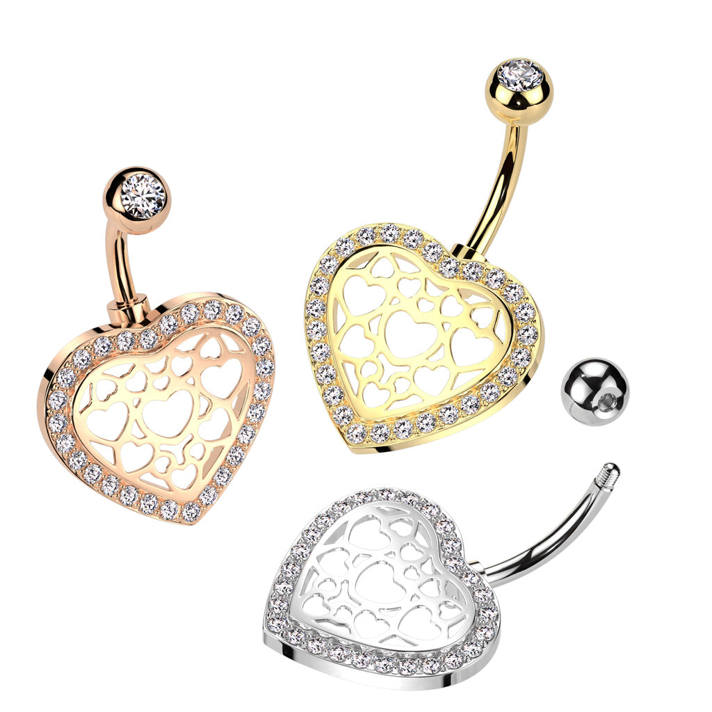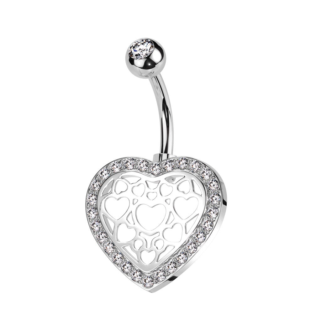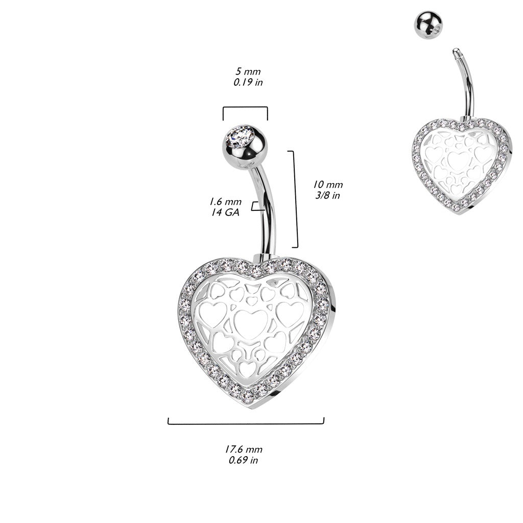 CZ Crystal Lined Hollow Heart Design Belly Button Ring - 316L Stainless Steel