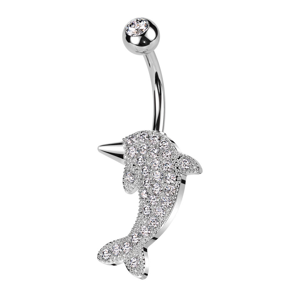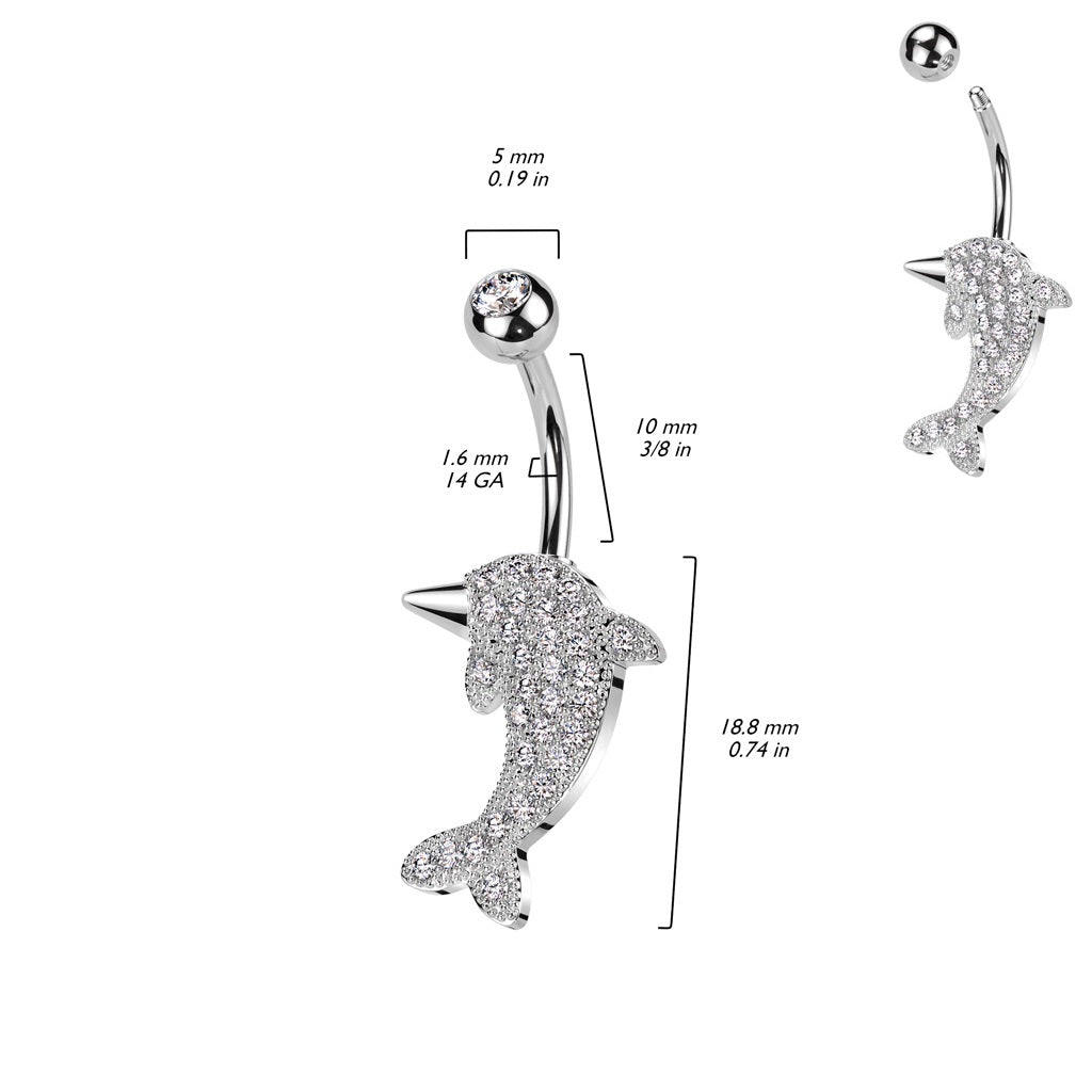 CZ Crystal Paved Dolphin Belly Button Ring - 316L Stainless Steel