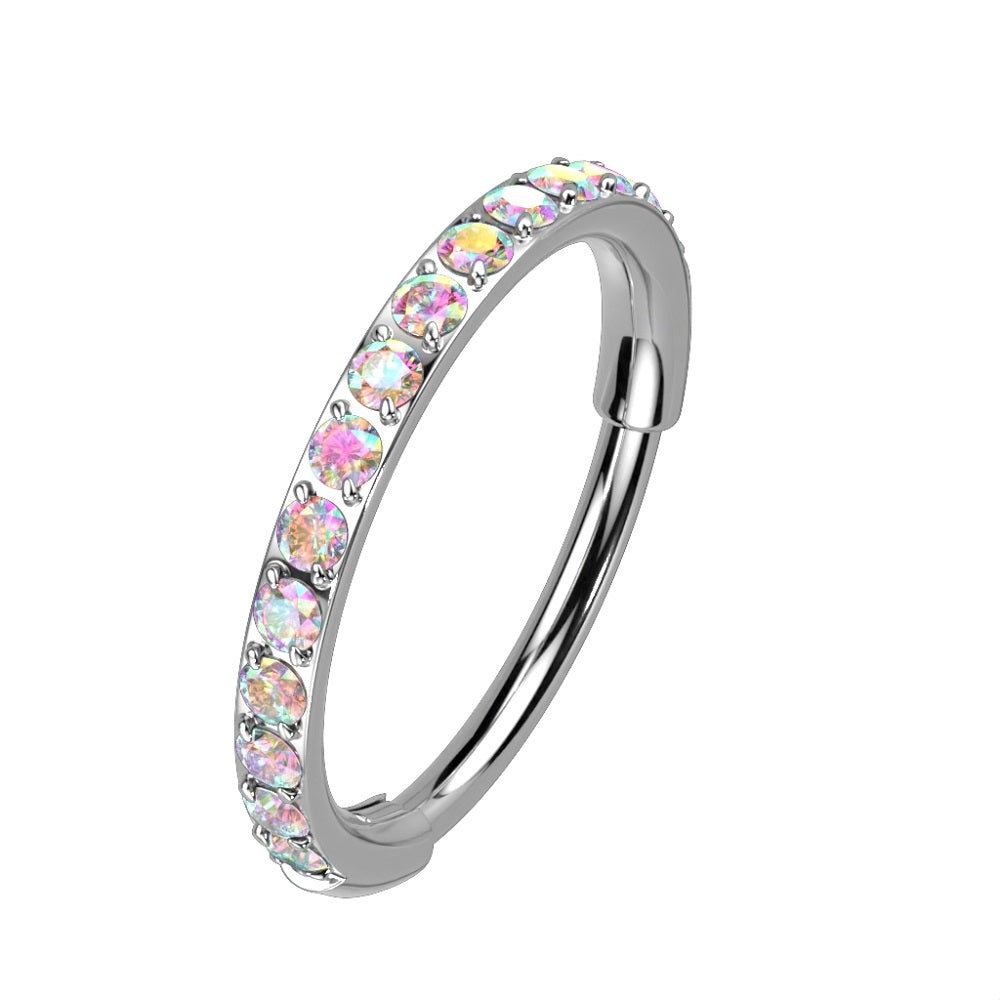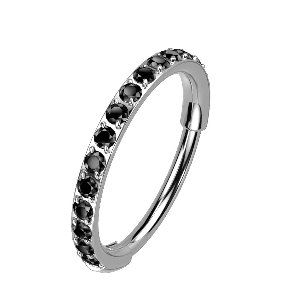 CZ Crystal Paved Sides Hinged Segment Ring - G23 Implant Grade Titanium