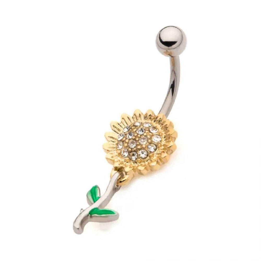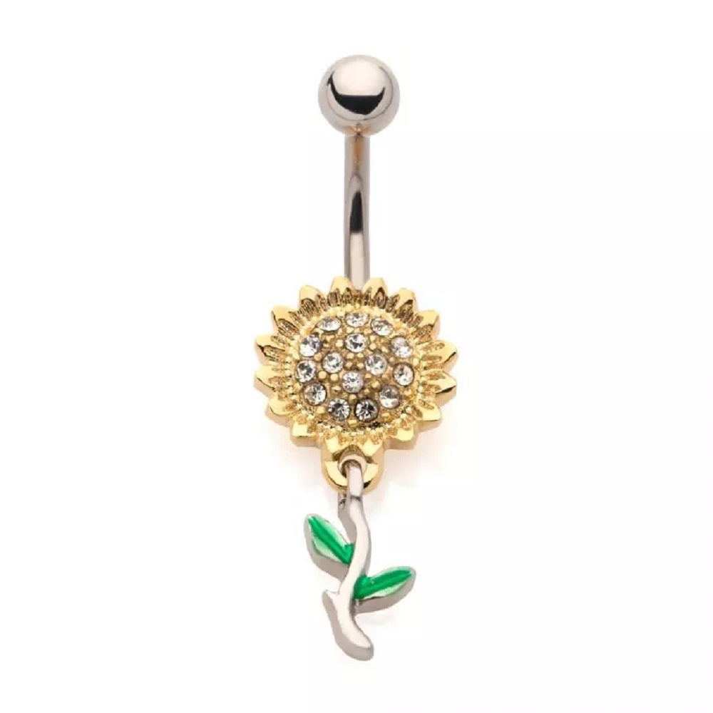 CZ Crystal Paved Sunflower Belly Button Ring - 316L Stainless Steel
