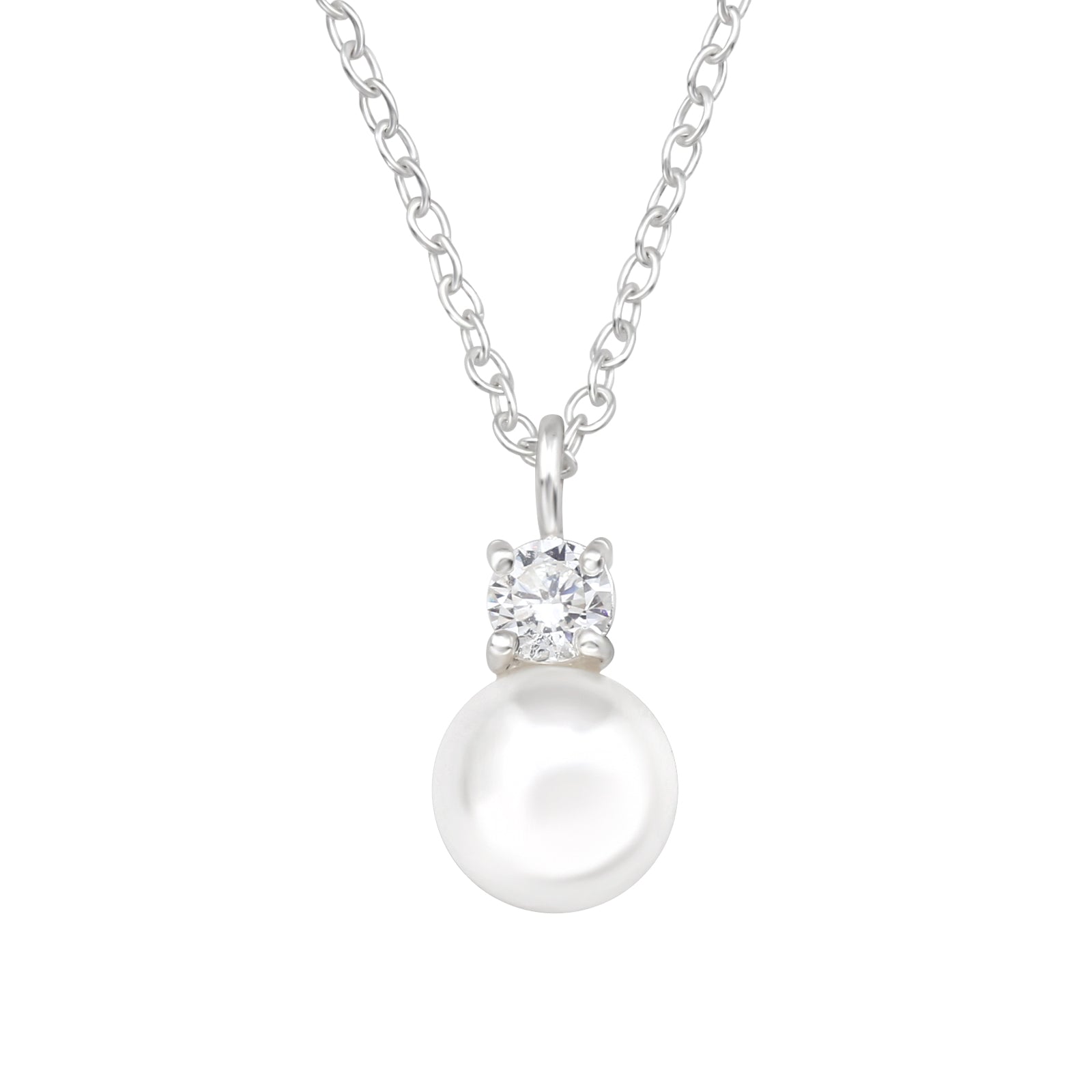 CZ Crystal with Synthetic Pearl Pendant Necklace - 925 Sterling Silver