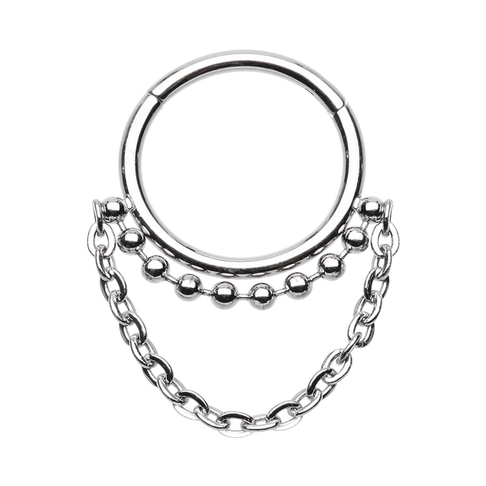 Dangling Chain Tribal Ball Seamless Hinged Clicker Ring - 316L Stainless Steel