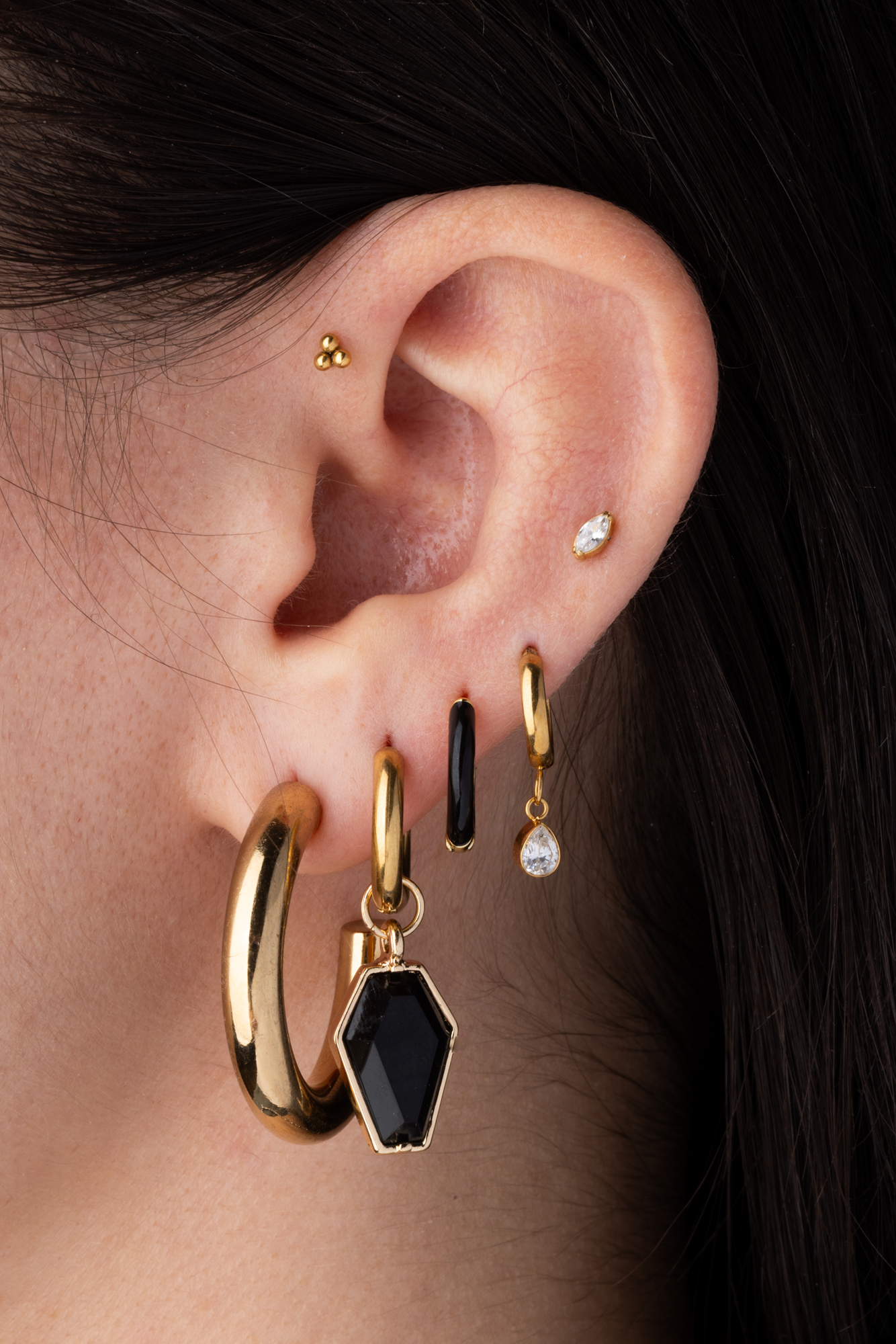 MATERIAL: ASTM F-136 implant grade titanium, cubic zirconia crystal, and plated with gold PVD as applicable