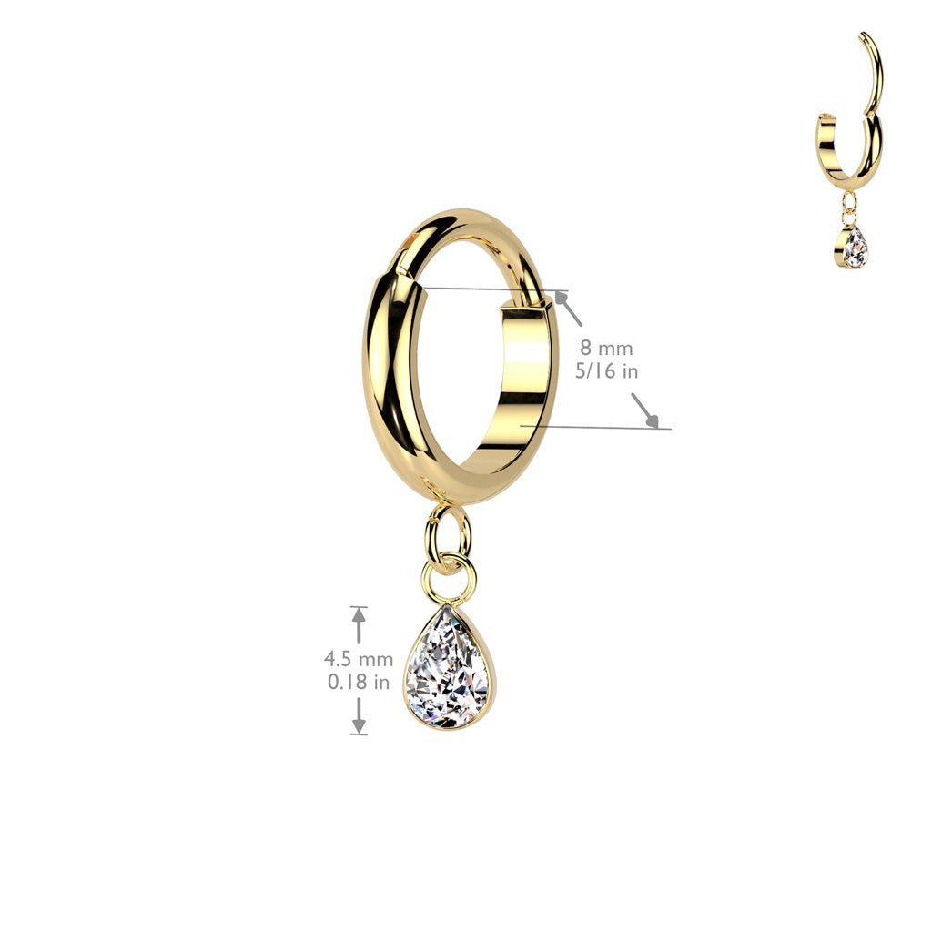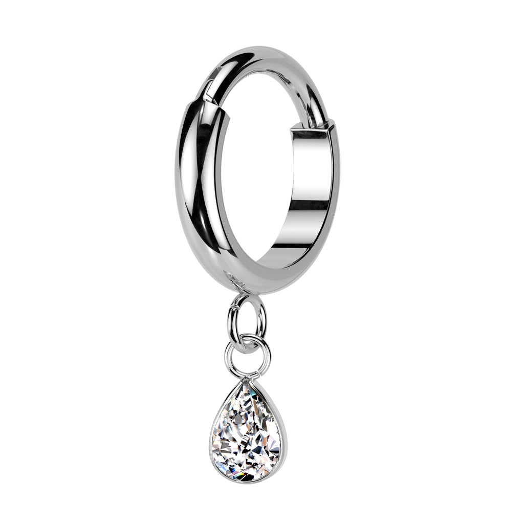 Dangling CZ Crystal Teardrop Hinged Segment Clicker Ring - ASTM F-136 Implant Grade Titanium