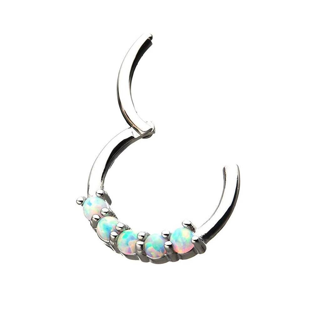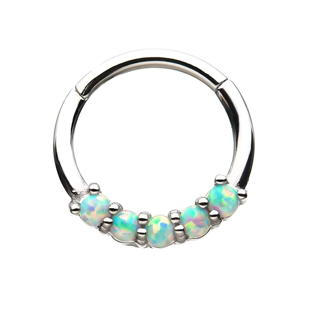 Five Prong Set Synthetic Opal Hinged Segment Ring - Stainless Steel