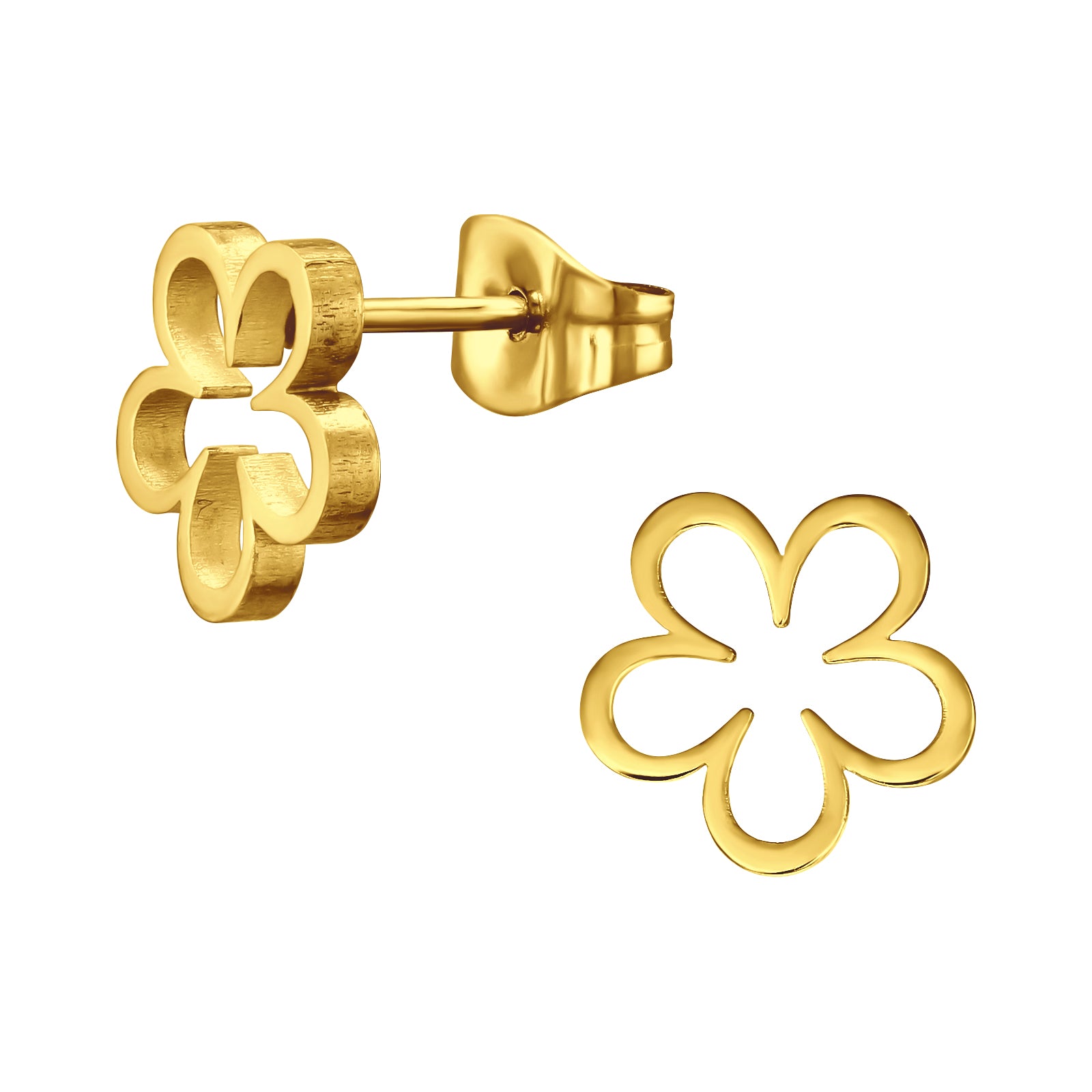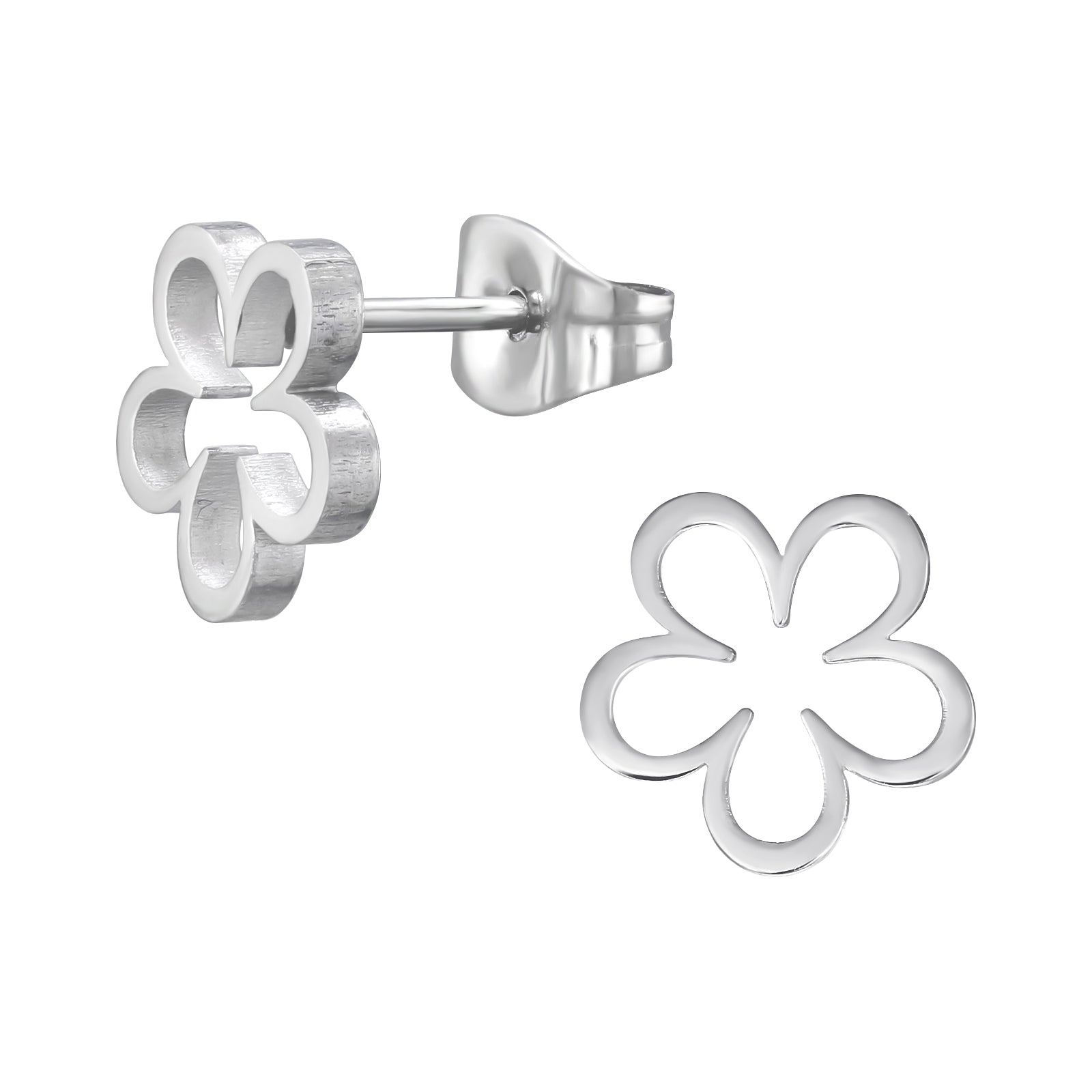 Flower Outline Stud Earrings - Pair - Stainless Steel