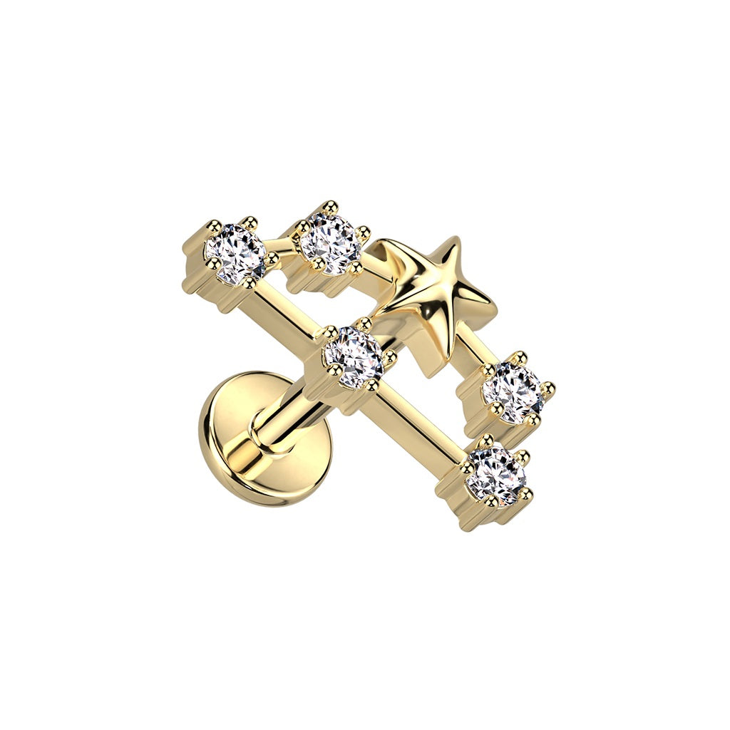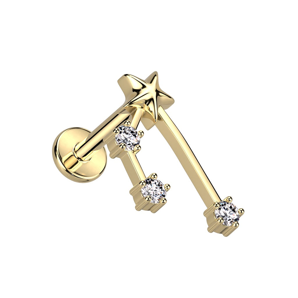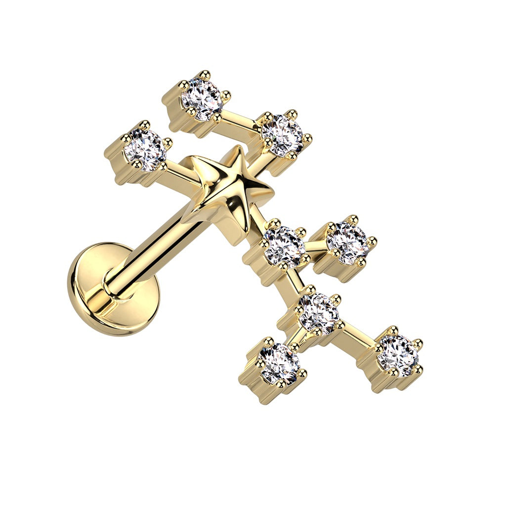 Gold Plated Internally Threaded CZ Crystal Zodiac Constellation Flat Back Stud - 316L Stainless Steel