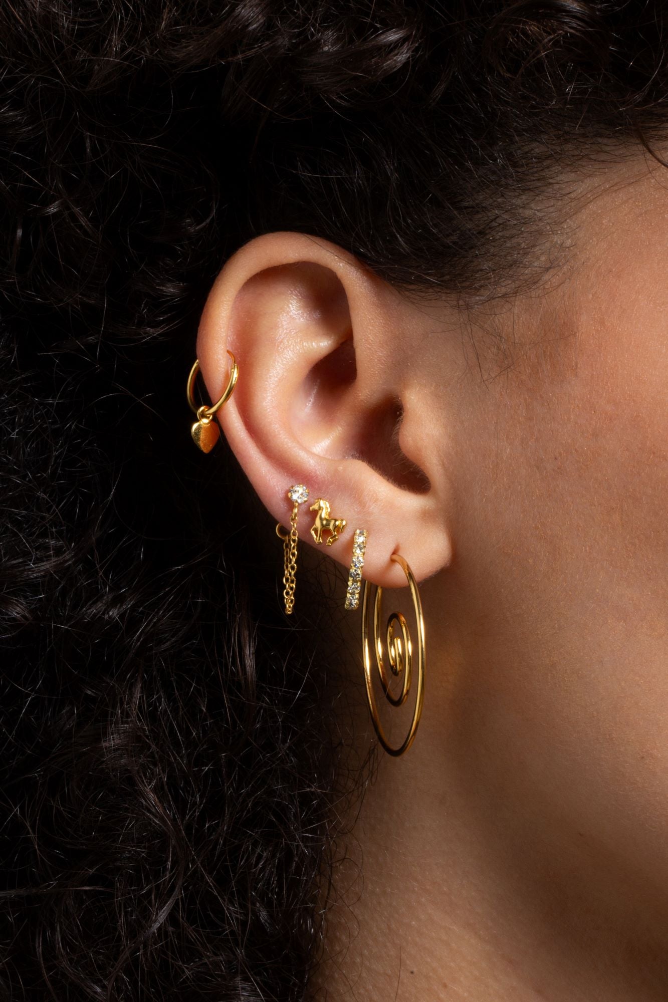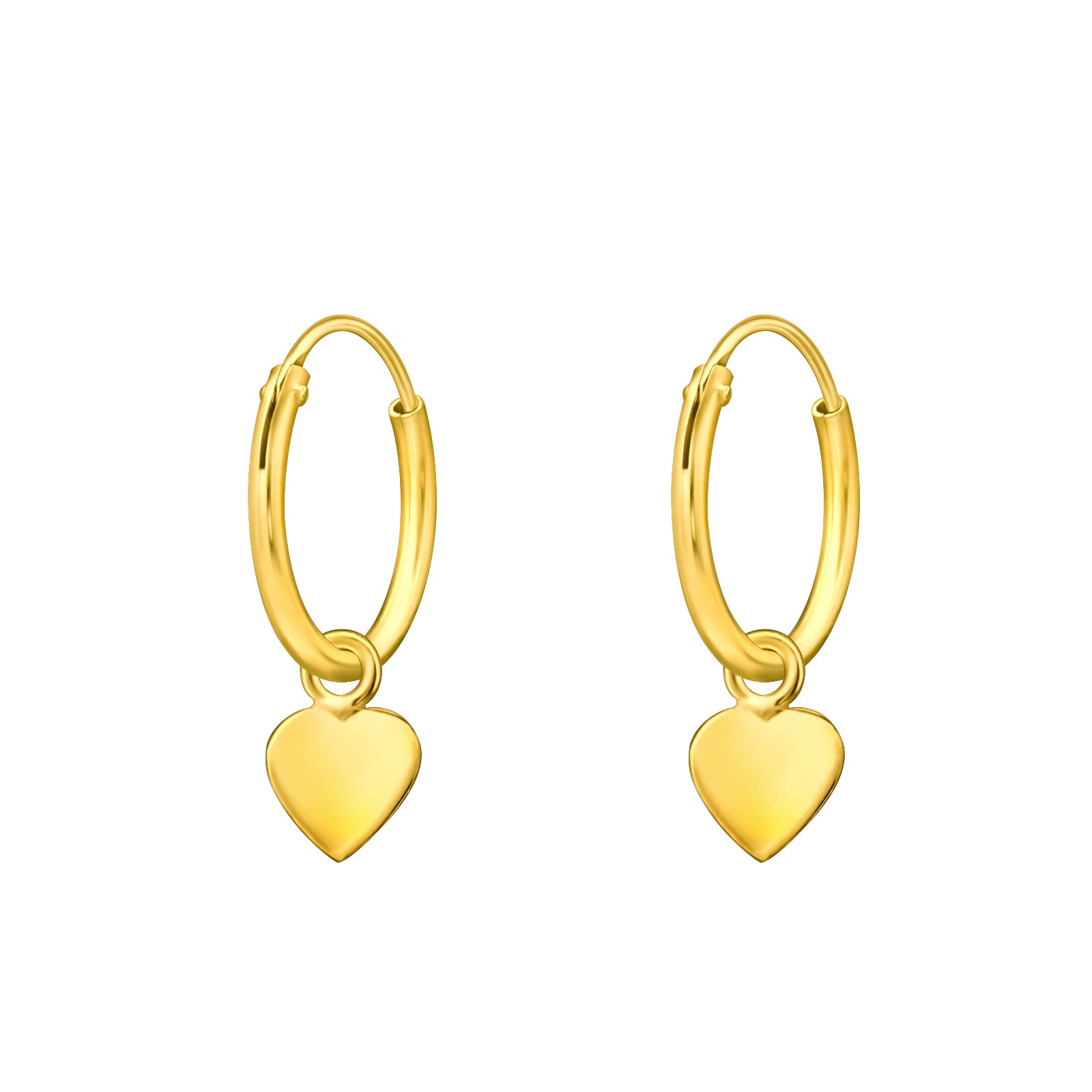 Heart Dangling Hoop Earrings - Pair - Gold Plated 925 Sterling Silver