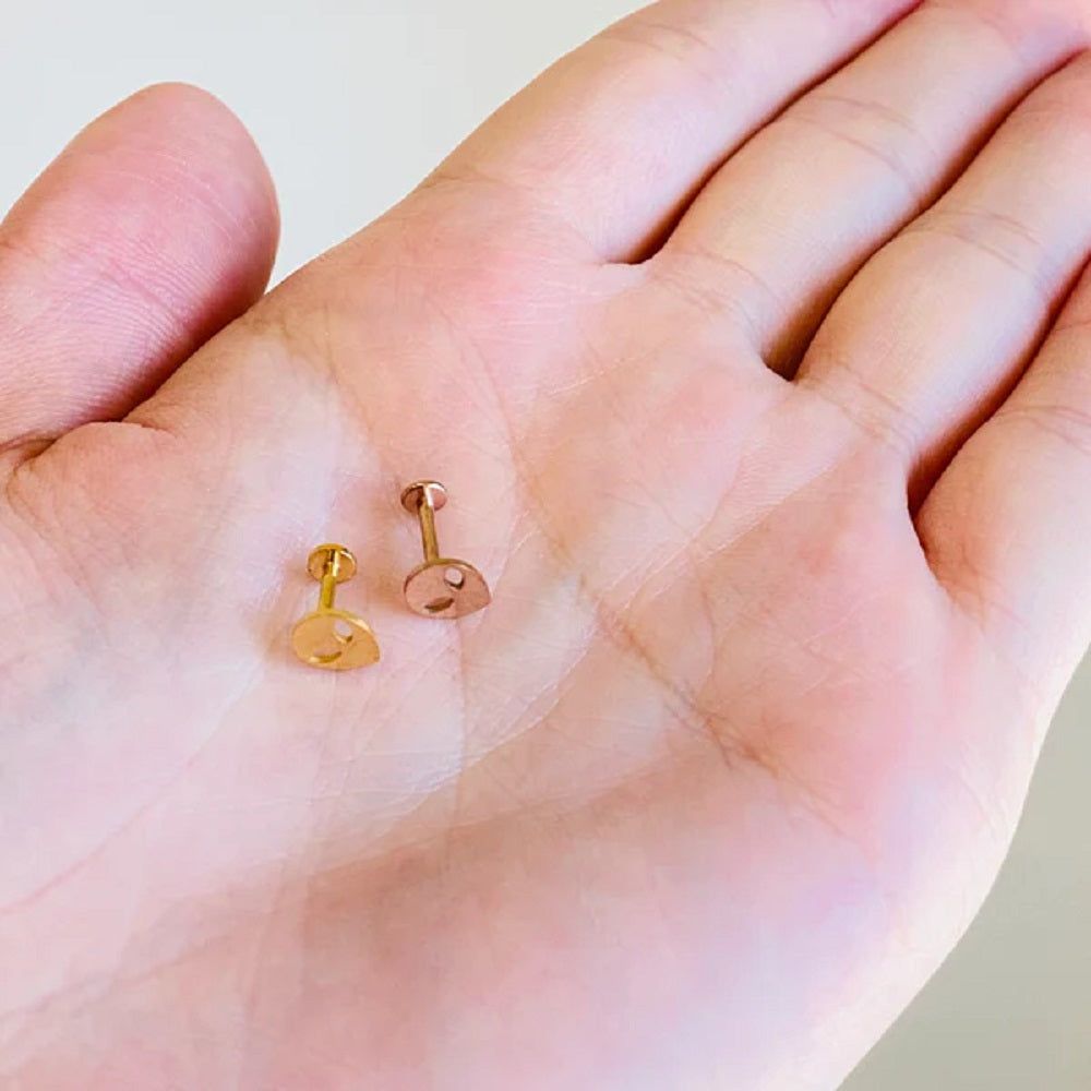 Internally Threaded Alien Head Top Flat Back Labret Stud - 316L Stainless Steel