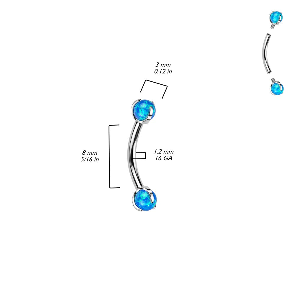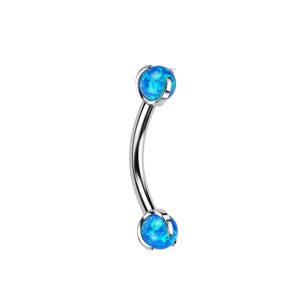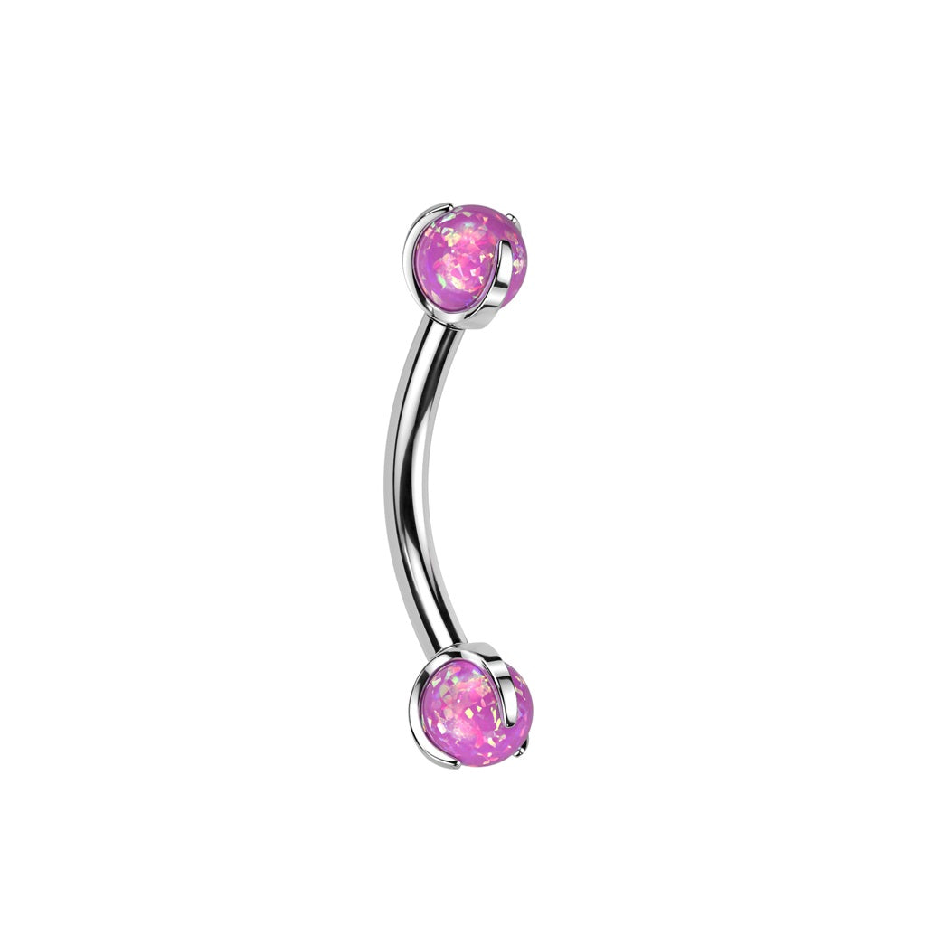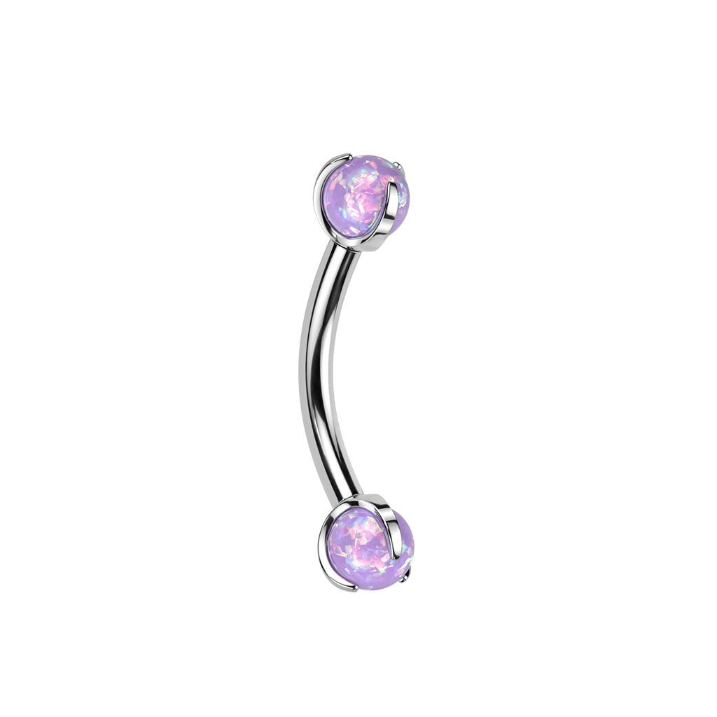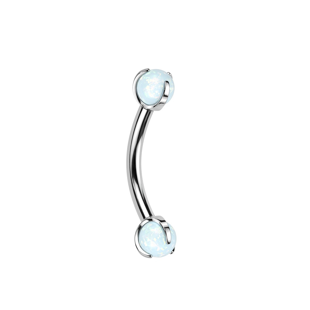 Internally Threaded Claw Set Synthetic Opal Ball Curved Eyebrow Barbell - F136 Implant Grade Titanium