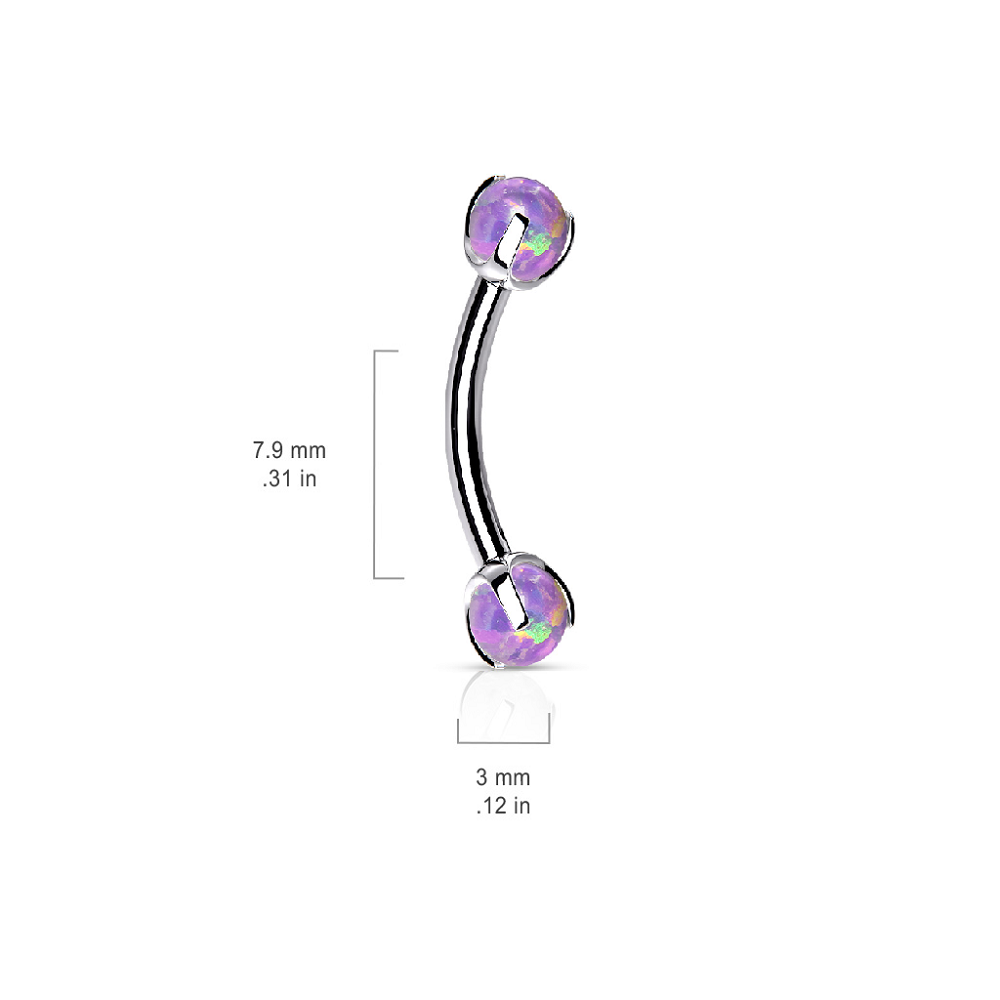 Internally Threaded Claw Set Synthetic Opals Eyebrow Curved Barbell