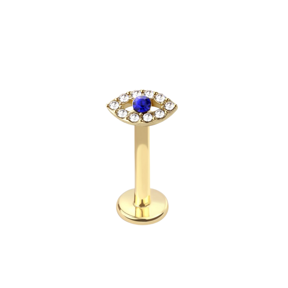 Internally Threaded CZ Crystal Evil Eye Flat Back Stud - 316L Stainless Steel