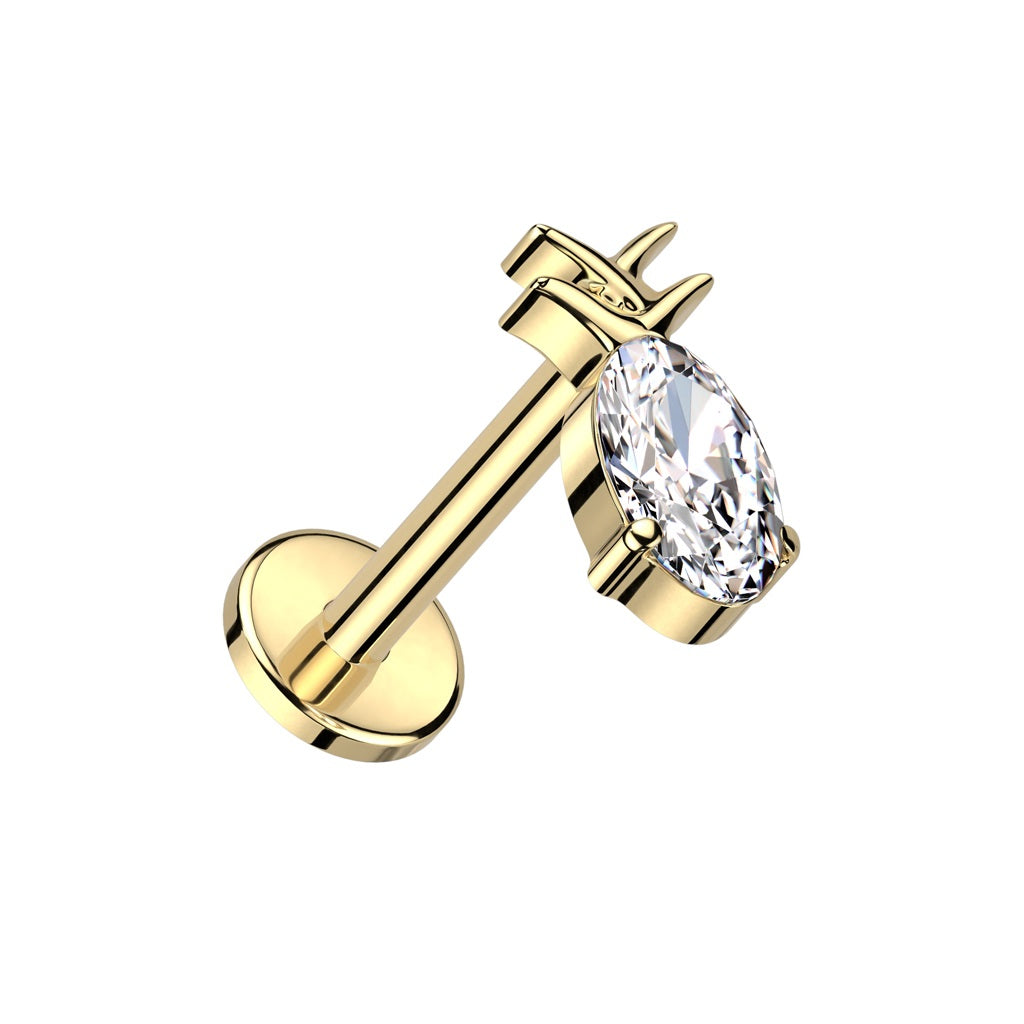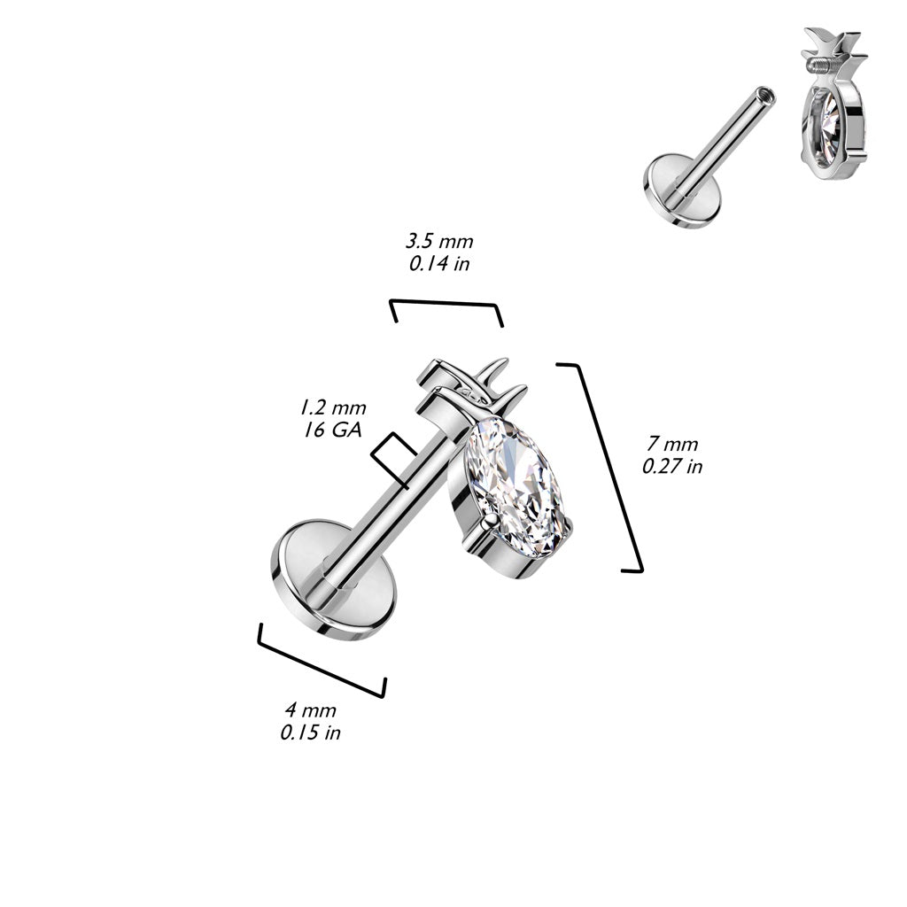 Internally Threaded CZ Crystal Pineapple Flat Back Stud - ASTM F-136 Implant Grade Titanium