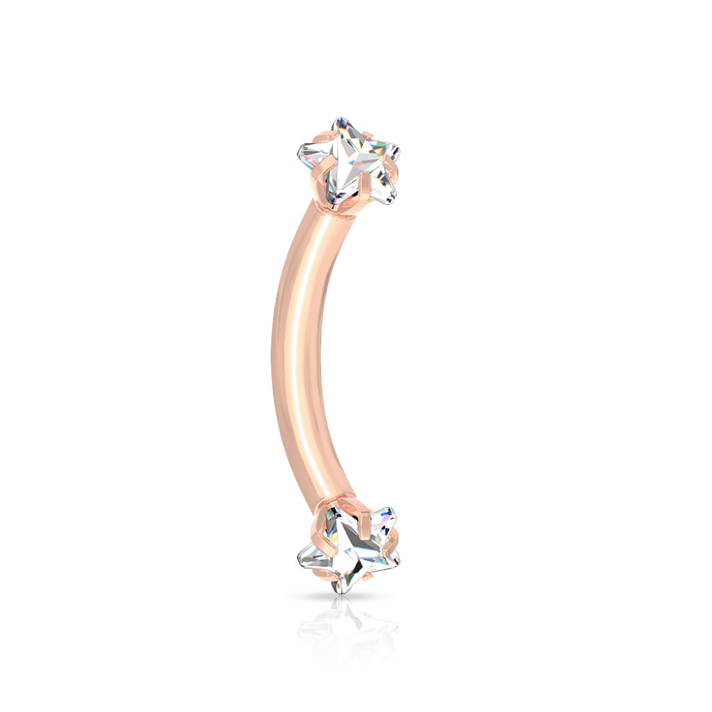 Internally Threaded Prong Set CZ Crystal Star Ends Cartilage Helix Daith Rook Eyebrow Curved Barbell