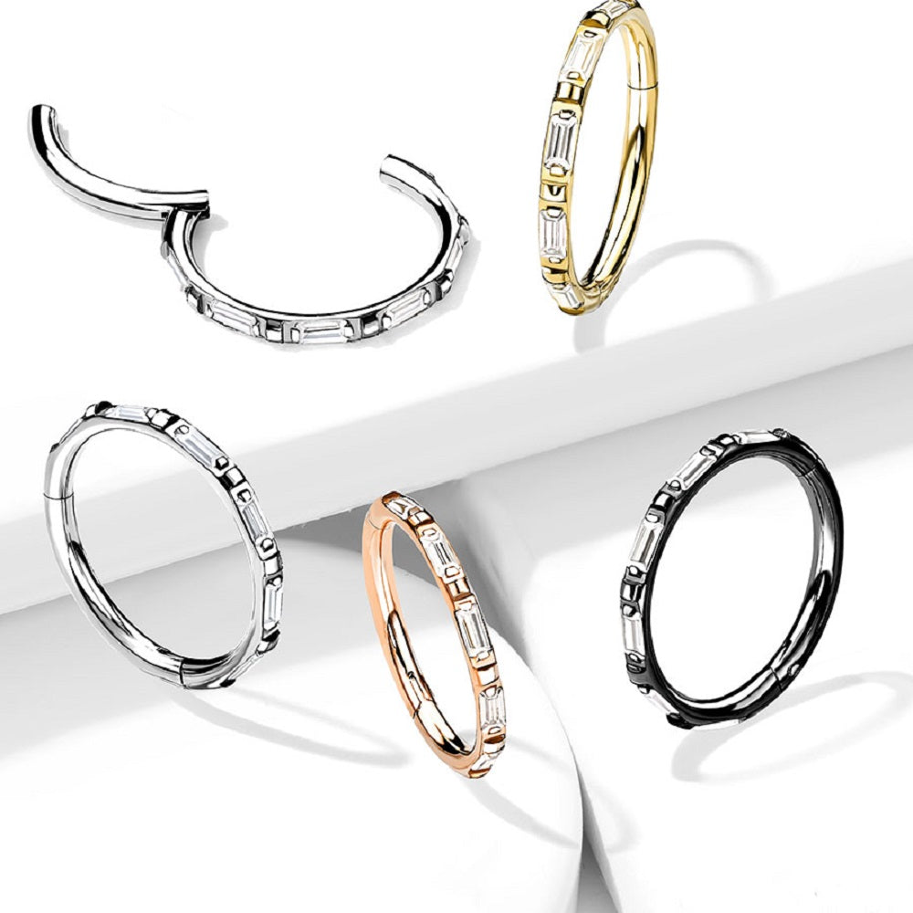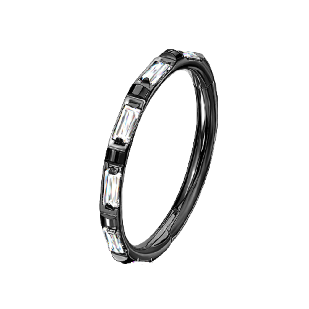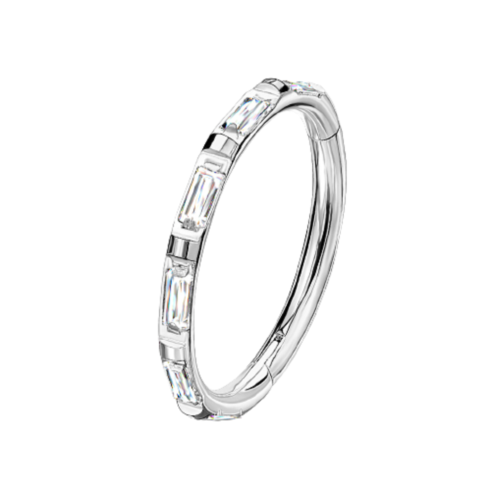 Rectangular Baguette CZ Crystal Lined Hinged Segment Ring - G23 Implant Grade Titanium