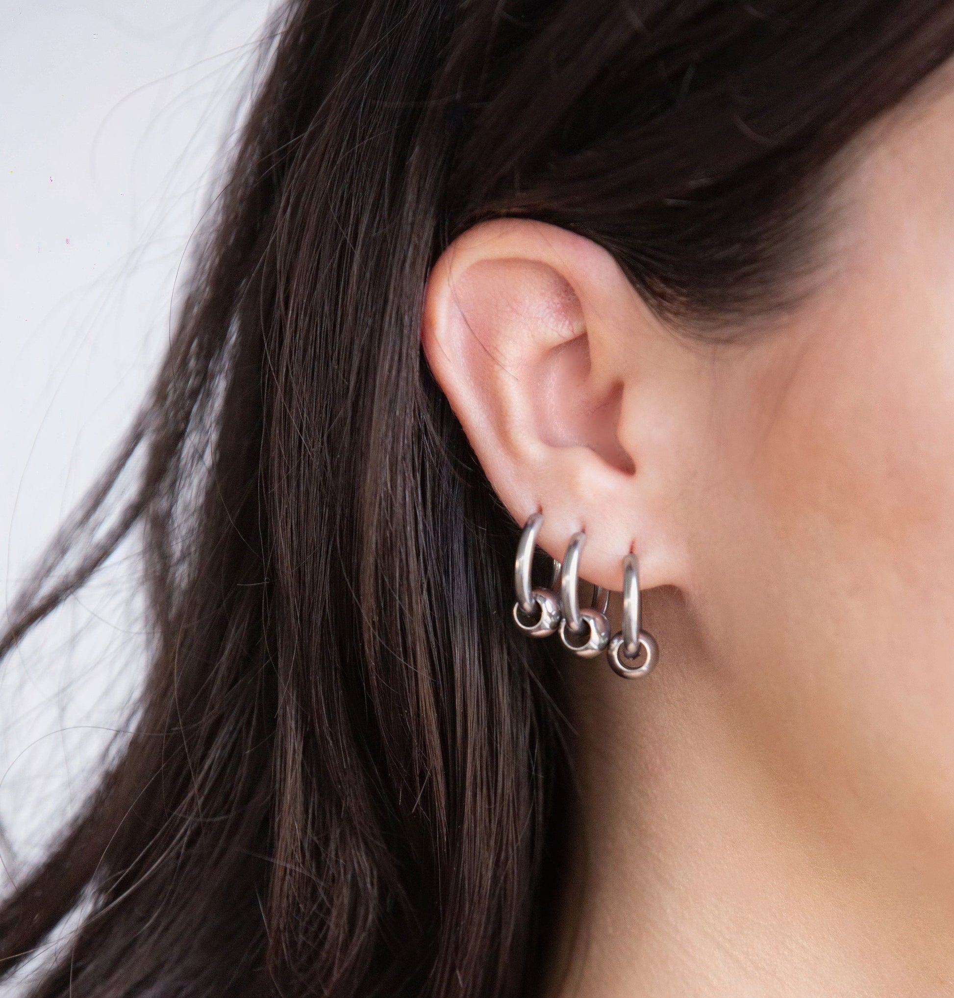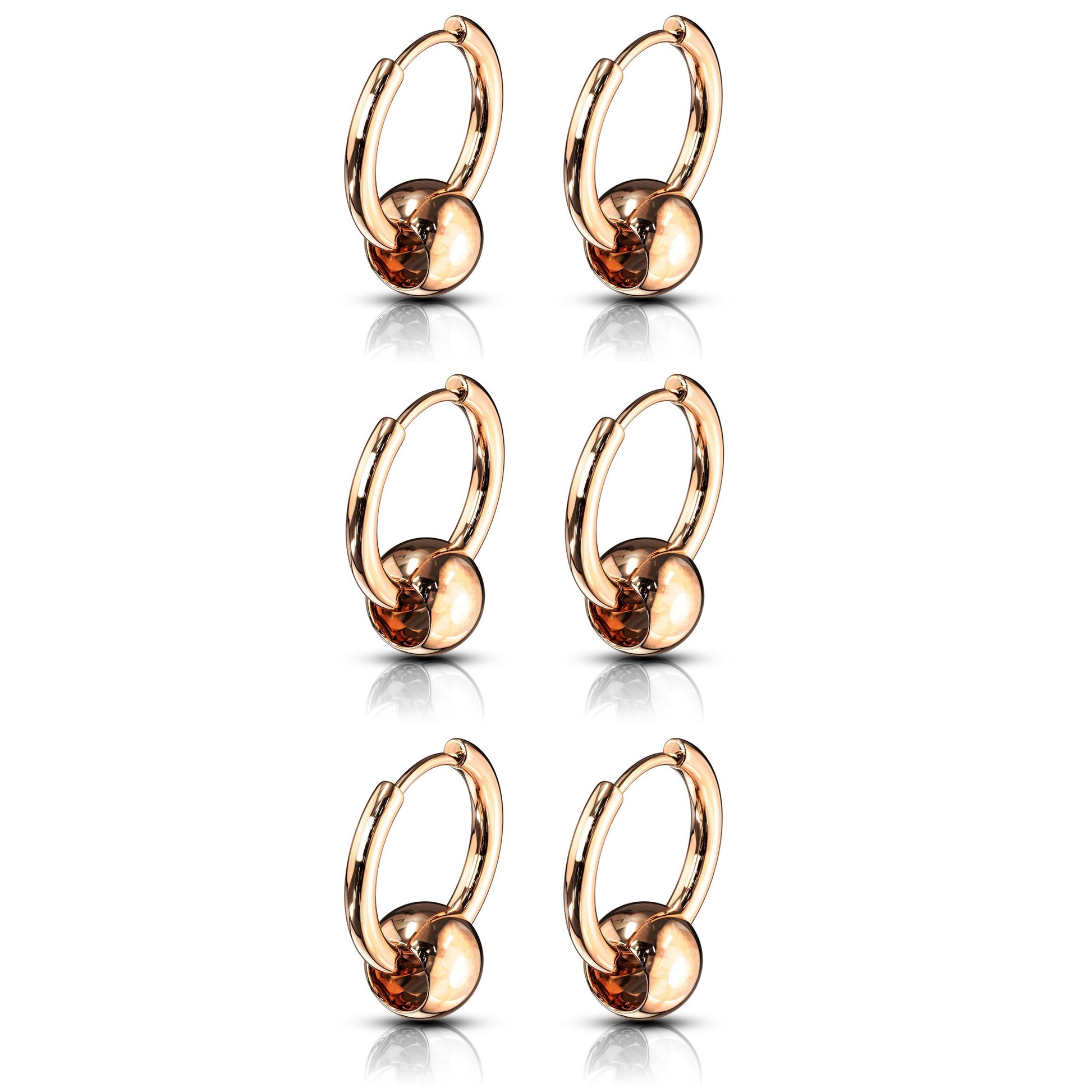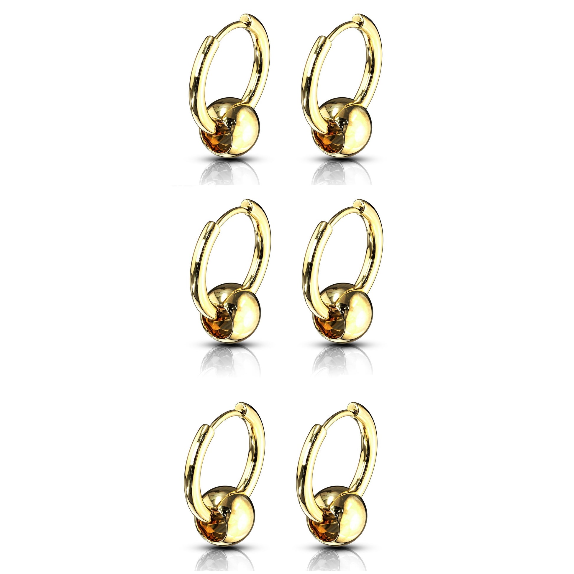 Set of 3 Pairs of Faux Captive Bead Hinged Hoop Earrings - 316L Stainless Steel