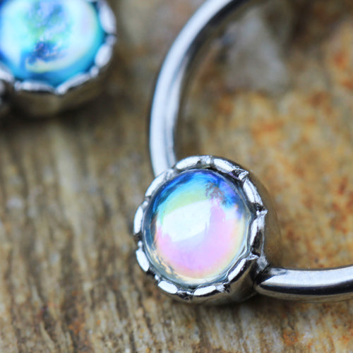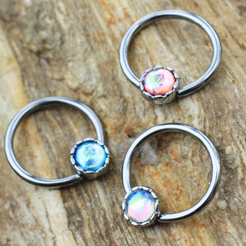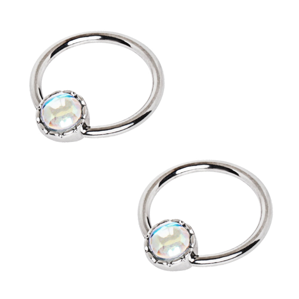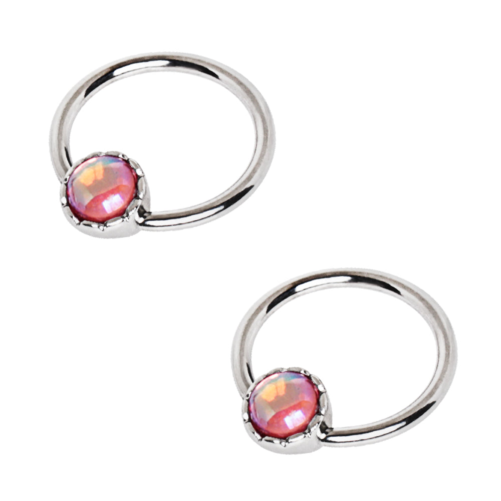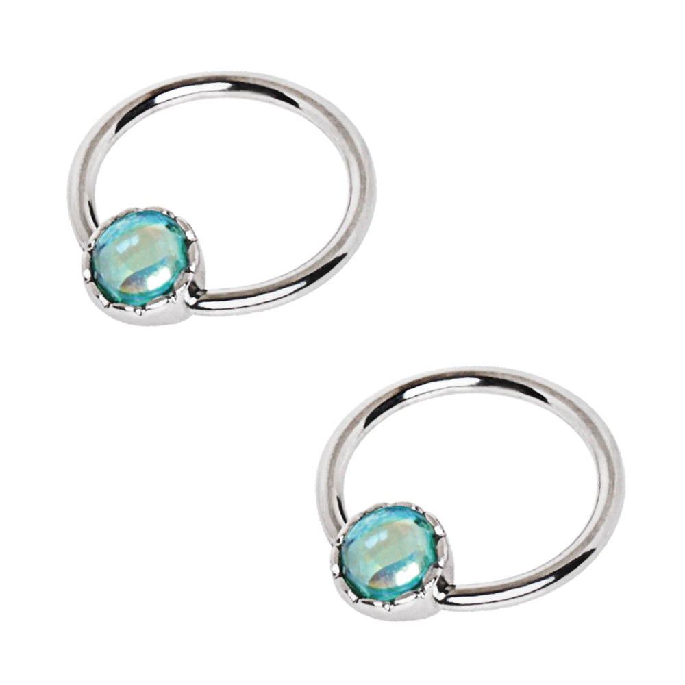 Synthetic Opal Captive Bead Nipple Rings - Stainless Steel - Pair