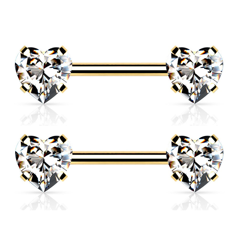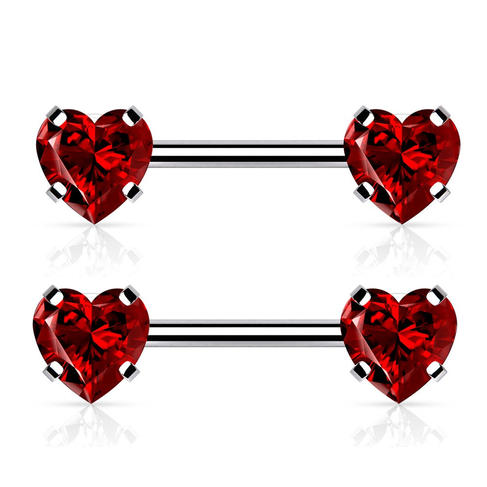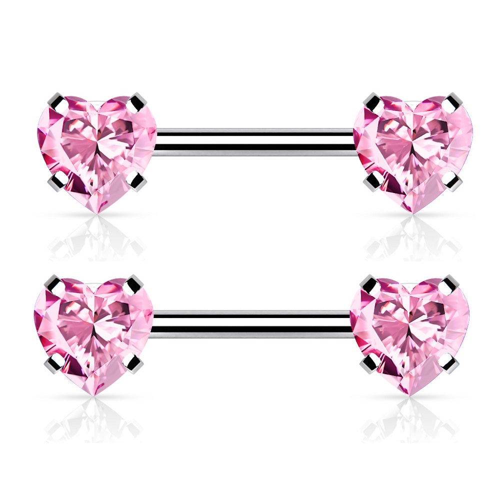 Threadless Push-in Prong Set Crystal Heart Nipple Barbells - Stainless Steel - Pair