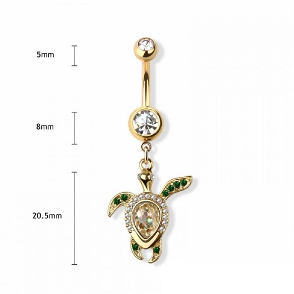 Swimming Sea Turtle Dangling Belly Button Ring - 316L Stainless Steel