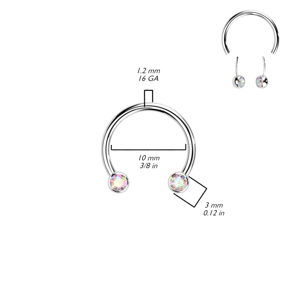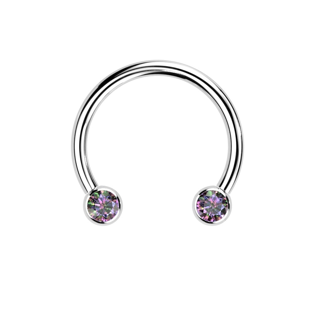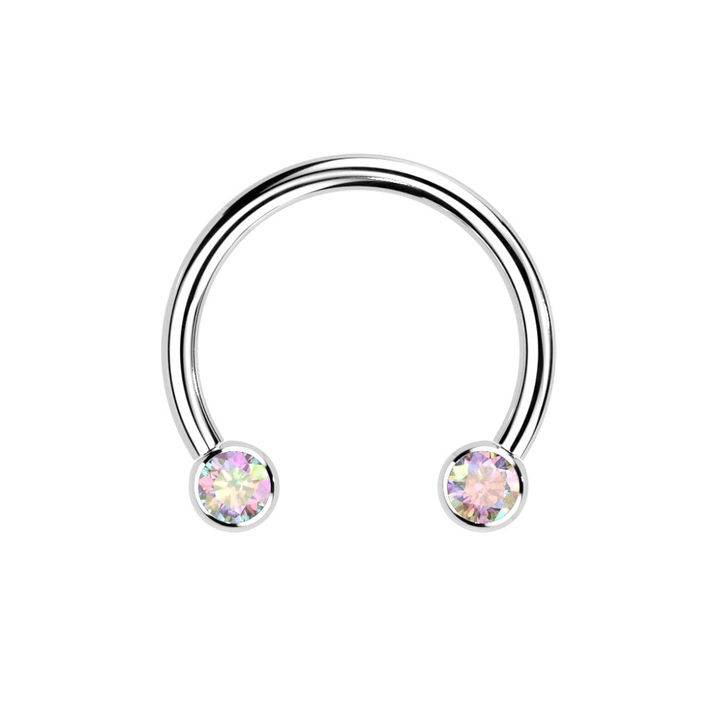 Threadless CZ Crystal Ends Horseshoe Circular Barbell - F136 Implant Grade Titanium