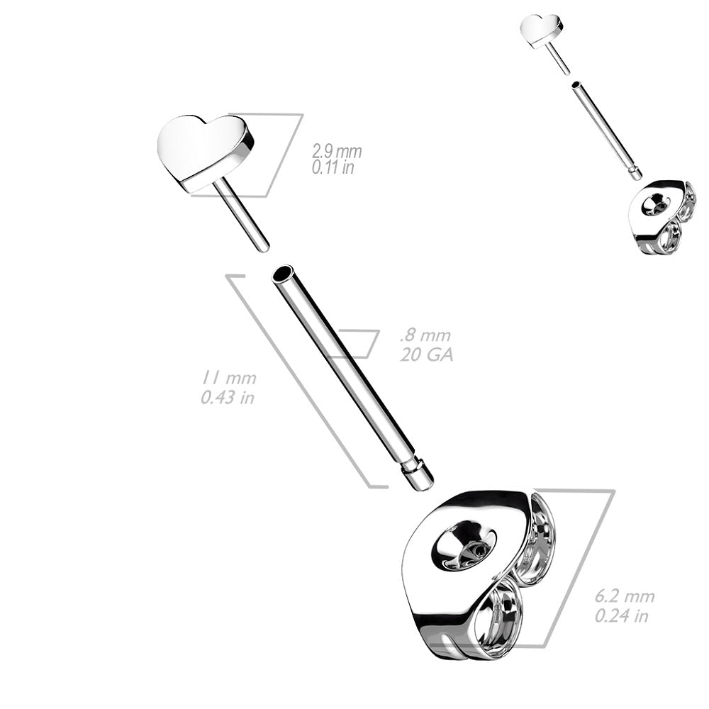 Threadless Heart Shaped Top Stud Earrings - G23 Implant Grade Titanium