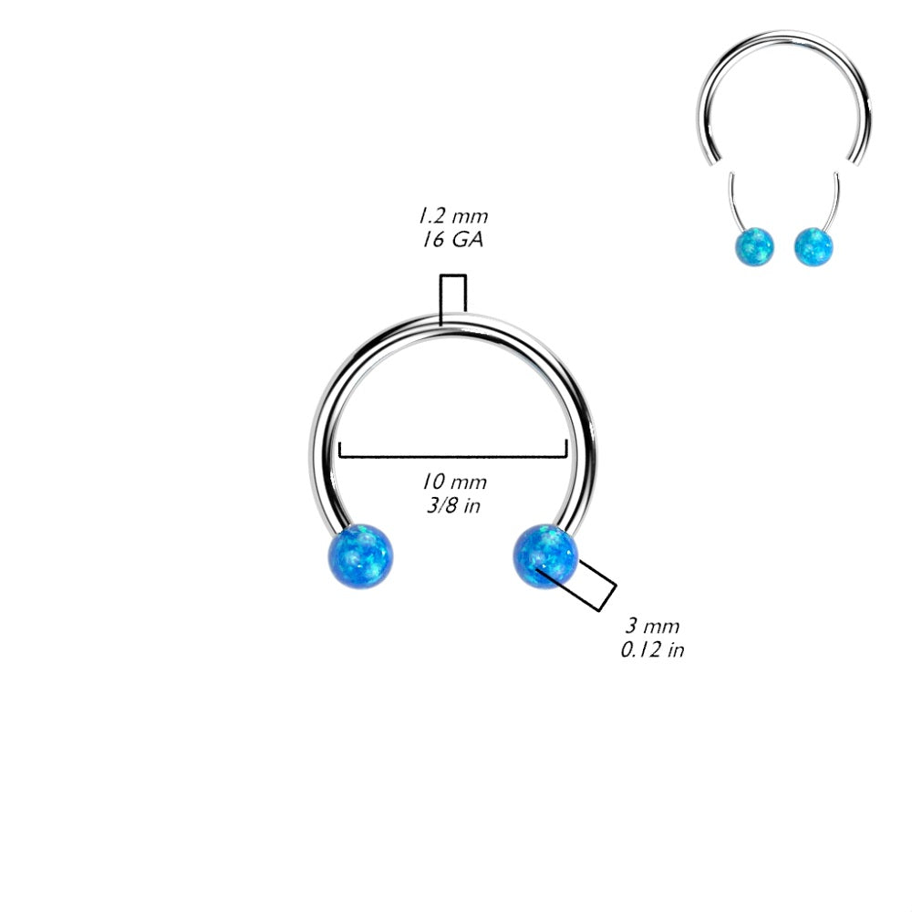Threadless Synthetic Opal Ball Ends Horseshoe Circular Barbell - F136 Implant Grade Titanium